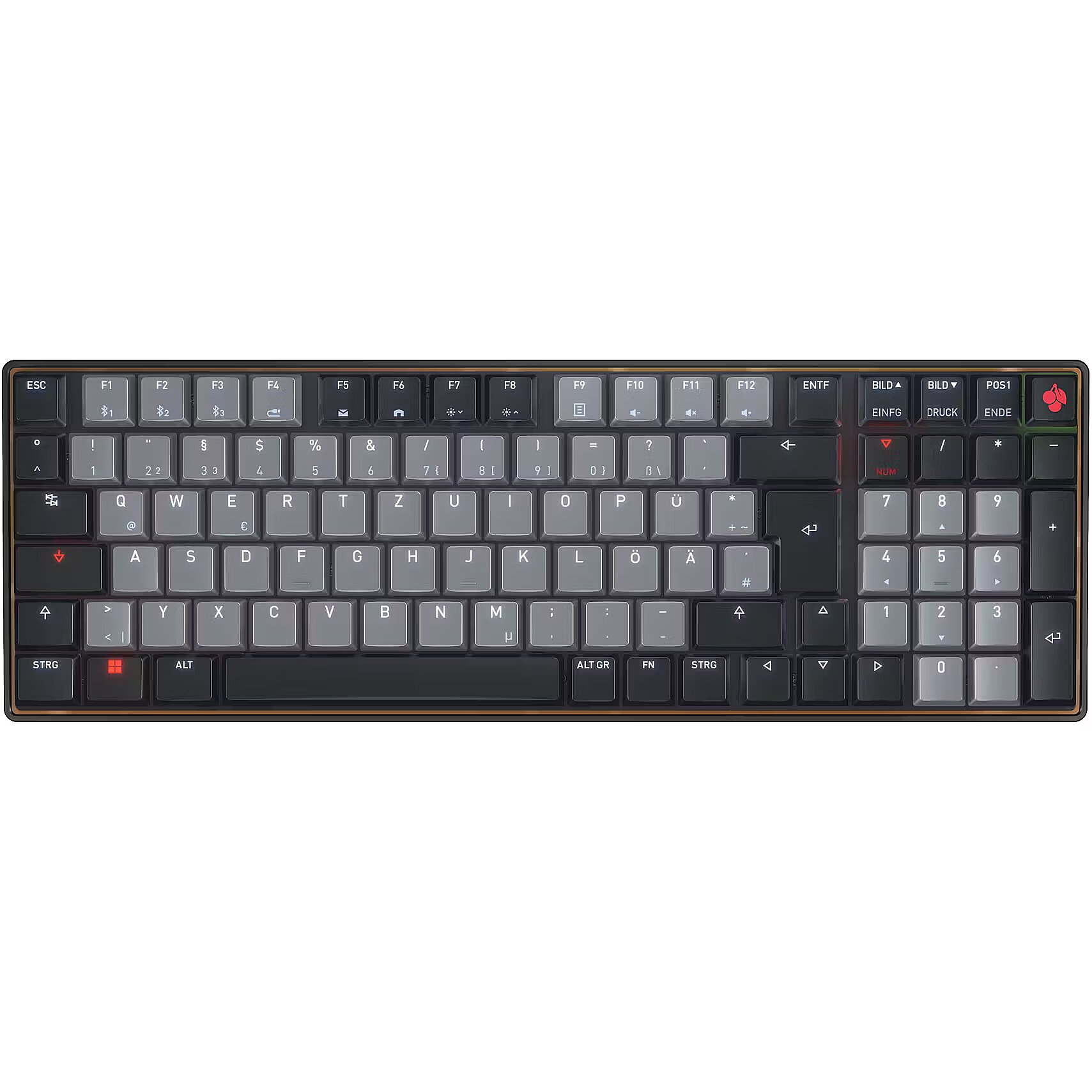 LongSummaryDescription - CHERRY KW 550 MX LP. Keyboard form factor: 96%. Keyboard style: Straight. Connectivity technology: Wired & Wireless, Device interface: USB + Bluetooth, Keyboard key switch: Mechanical, Keyboard layout: QWERTZ. Backlight type: LED. Cable length: 1.8 m. Recommended usage: Home/Office. Product colour: Black