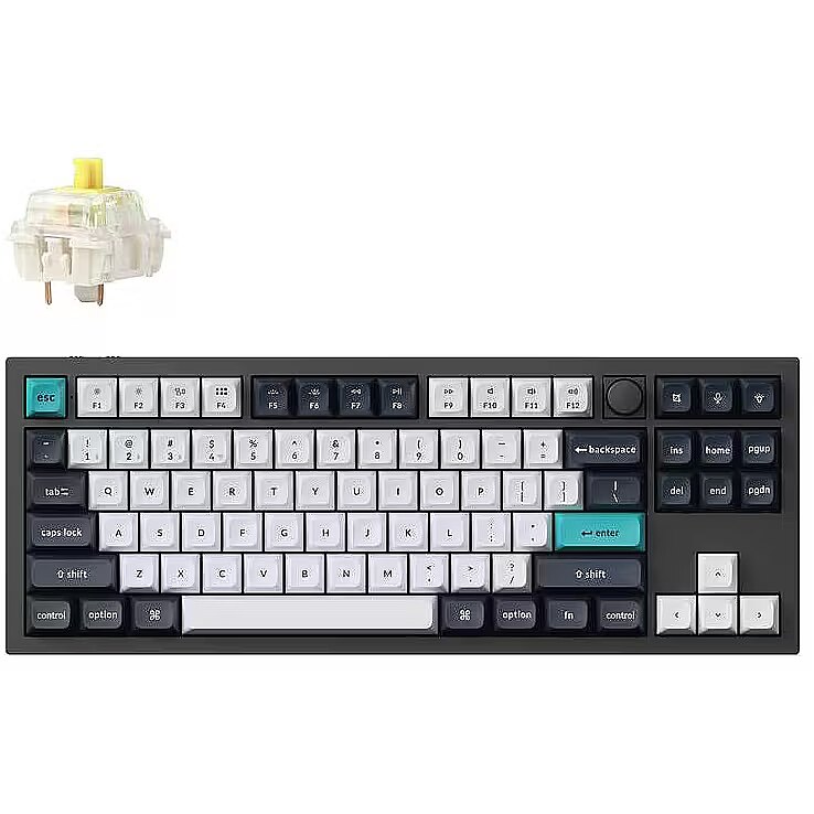 Summary - Keychron Q3 Max. Keyboard form factor: 80%. Keyboard style: Straight. Connectivity technology: Wired & Wireless, Device interface: USB + RF Wireless + Bluetooth, Keyboard key switch: Mechanical, Keyboard layout: QWERTY, Keyboard number of keys: 87. Backlight type: RGB LED. Recommended usage: Gaming. Product colour: Black, Cyan, Dark Blue, White