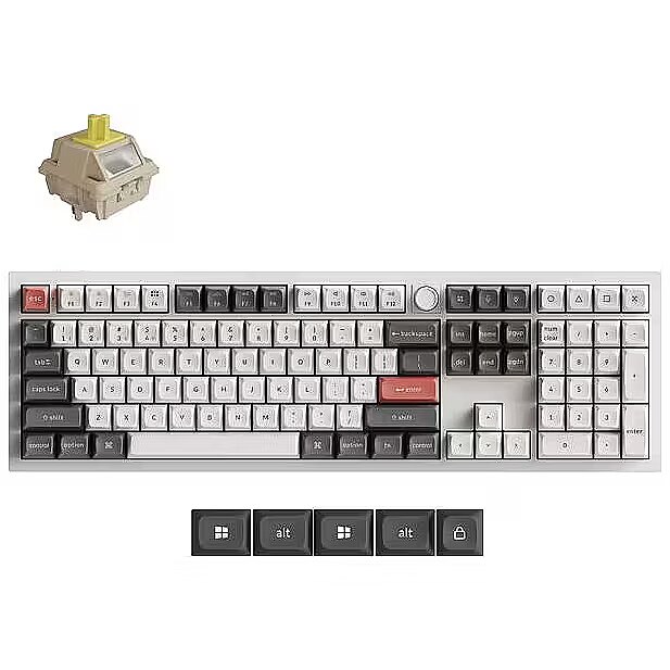 Summary - Keychron Q6 Ultra 8K. Keyboard form factor: Full-size (100%). Keyboard style: Straight. Connectivity technology: Wired & Wireless, Device interface: USB + RF Wireless + Bluetooth, Keyboard key switch: Mechanical. Backlight type: RGB LED. Recommended usage: Universal. Product colour: White