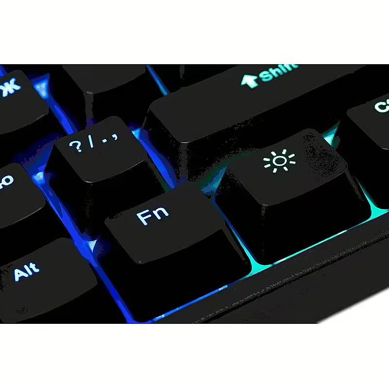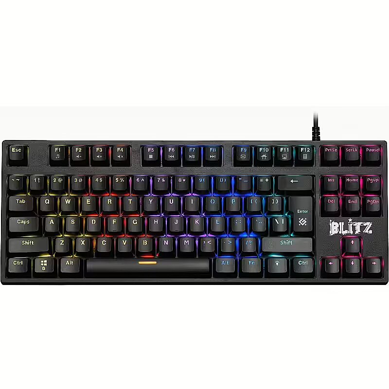 Description - DEFENDER BLITZ GK-240L MECHANIC KEYBOARD Rainbow backlight Illuminated buttons and symbols Increased wear resistance level In-game WIN key lock Adjustable backlight brightness Change the backlight brightness with the FN+ up/down arrow keys. Hot keys for office, multimedia and Internet applications Adjust backlight FN+ right/left arrows Audible sound / switch clicks Double injection technology The symbols will not fade over time as they are moulded in two plastic colours: black for the button area and white/transparent for the symbols.
