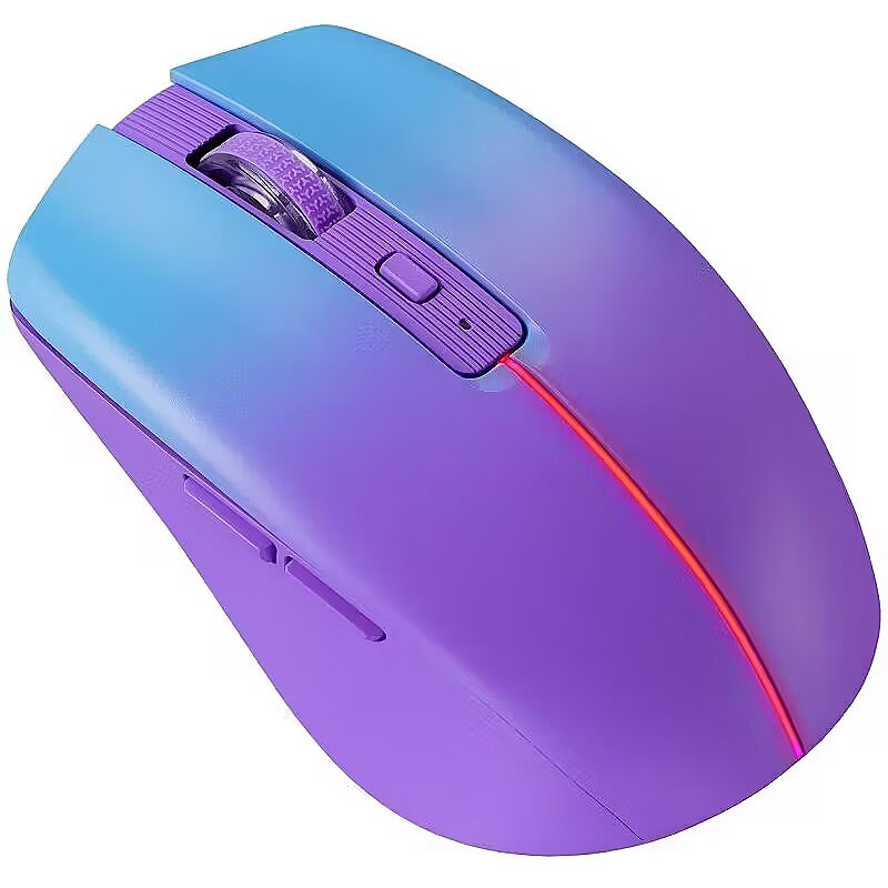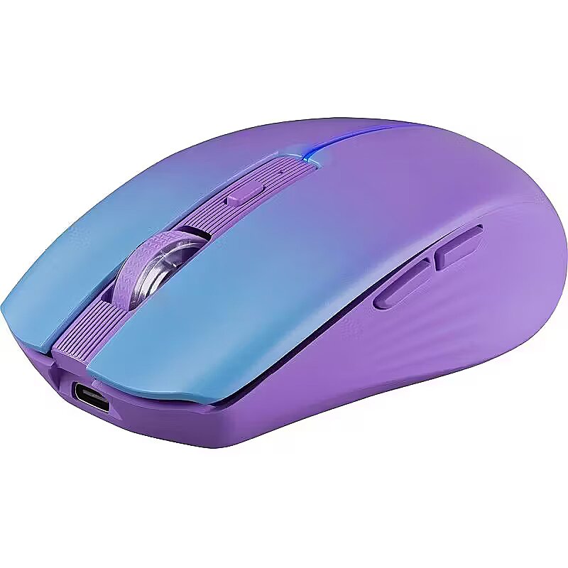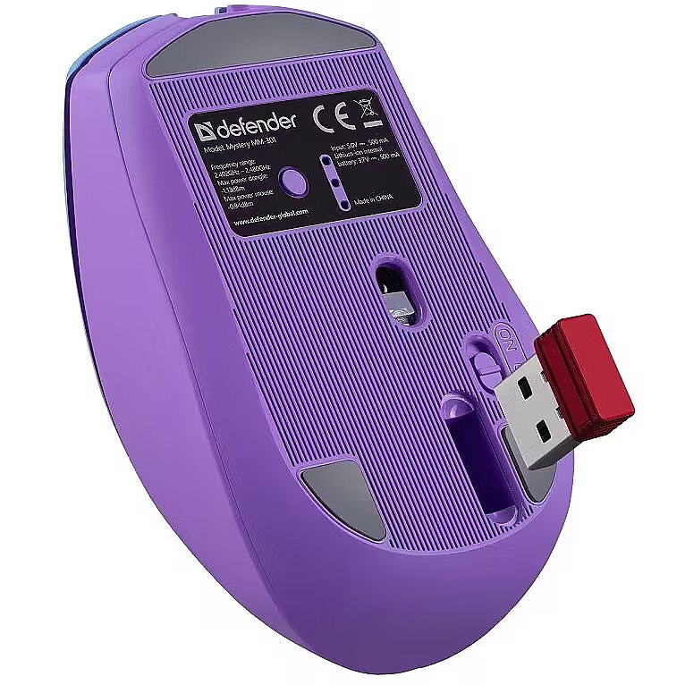 Description - Defender Mystery MM-301 RF+BT Wireless Mouse - Purple, 1600 dpi, 6 Buttons Wireless optical mouse. Stylish office mouse with the ability to connect via Bluetooth or 2.4 GHz radio channel (USB adapter included). Features rainbow lighting, built-in 500 mAh battery, 2 additional side buttons, 3 DPI modes, and Teflon feet for smooth gliding across the desk surface.