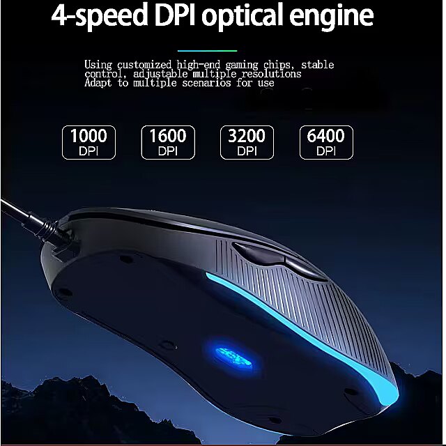Sensor: Optical with adjustable DPI resolution (800/1600/2400/3200).