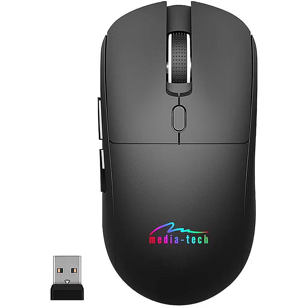 Description - Media-Tech SILENT & RECHARGE MT1124 Our definition of versatility Wireless 2-in-1 mouse (BT/RF) SILENT & RECHARGE MT1124 Tired of tangled cables, annoying clicking noises, and constant searching for batteries? Discover the mouse that solves all these problems. SILENT & RECHARGE MT1124 od media tech is a next-generation wireless optical mouse designed for maximum freedom, comfort and performance. Whether you're working on an important project in the office, browsing the internet at home, or playing a fierce battle in your favorite game MT1124 is a reliable partner who will adapt to your needs. The Wireless Revolution: The Choice is Yours Forget about the limitations of a single connectivity standard. Mouse SILENT & RECHARGE MT1124 gives you full control thanks to dual wireless technology. Need a minimalist desk without extra receivers?  Connect via Bluetooth 5.0 (backward compatible with BT 3.0) with your laptop, tablet or smartphone. Do you value maximum stability and minimal lag while gaming?  Use the included 2.4GHz USB nano receiver, which guarantees instant and reliable communication. You decide how you want to connect. A range of up to 10 meters gives you the freedom to work and play from anywhere in the room. The precision you need, silence you will love Thanks to the advanced optical sensor and a dedicated DPI change button, the mouse MT1124 perfectly suited to any task. Switch between resolutions with a single click. 1200/2400/3200 DPIto gain surgical precision when editing graphics or lightning-fast reactions in dynamic games. Moreover, the two main buttons are equipped with silent click technology. Work late, study at the library, or play at night silent clicks They provide complete discretion without disturbing anyone around you. This is a comfort that both you and your loved ones will appreciate. Made for your hand, designed to last for years Ergonomics is the key to efficiency. That's why SILENT & RECHARGE MT1124 to a large mouse with an optimally contoured shape, which fits perfectly in your hand and ensures a natural wrist position. Forget about fatigue even after long hours of work. Its symmetrical design makes it an excellent choice. for both right- and left-handed users. The whole thing is complemented by subtle, multi-colored Rainbow lighting that adds character to your workstation. Durable microswitches with a lifespan of up to 4,000,000 clicks  is a guarantee of reliability for many years. Silence you will love: No more annoying clicking The daily, repetitive clicking sounds of your mouse can be a source of irritation and distraction for both you and those around you.. Because SILENT & RECHARGE MT1124 has been equipped with silent click technology. Special, muted mechanisms in the main buttons reduce the clicking sound to an absolute minimum, making it practically inaudible. It's the perfect solution if you work in an open-plan office, a library, or simply value peace and quiet at home. Play, work, and study at any time without disturbing family or colleagues, while maintaining full focus on the task at hand.. Forget about batteries energy for weeks No more constantly buying and replacing batteries. Mouse MT1124 has a built-in, efficient lithium-ion battery, which provides on a single charge up to 30 days of work*. When the power runs out, simply plug it into any USB port using the modern connector USB-C (cable included) and continue working. This solution is not only convenient, but also ecological. You can freely use the mouse while charging we know how important this convenience is. Key features of the SILENT & RECHARGE MT1124 mouse: Dual connectivity technology: Flexible choice between Bluetooth 5.0 and RF 2.4GHz. Adjustable precision: Variable resolution 1200/2400/3200 DPI for every task. Silent operation: Quiet main buttons for comfort in any environment. Powerful battery: Up to 30 days of battery life* and convenient charging via USB-C. Universal ergonomics: Large, comfortable shape for right- and left-handed people. Reliable construction: Durable switches with a lifespan of 4 million clicks. Impressive design: Multi-color Rainbow backlight. Wide compatibility: Seamless operation on Windows 10/11, Mac OS and Android. Don't wait. Invest in comfort, versatility, and reliability that will transform your daily work and play experience. Add a wireless mouse. Media-Tech SILENT & RECHARGE MT1124 add to cart and feel the difference!