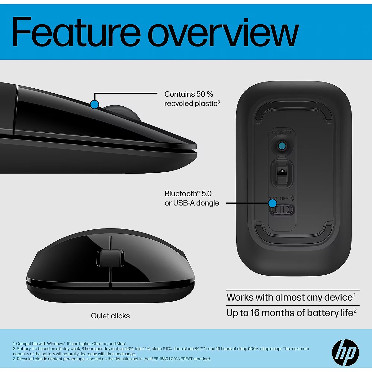 Now you can rely on a slim, pocket-sized mouse with quieter clicks to get work done wherever you need to, without compromising comfort or functionality. Plus, you can feel good using a mouse that contains 50% post-consumer recycled plastic and comes in 100% recyclable packaging. Freedom to Work Wherever