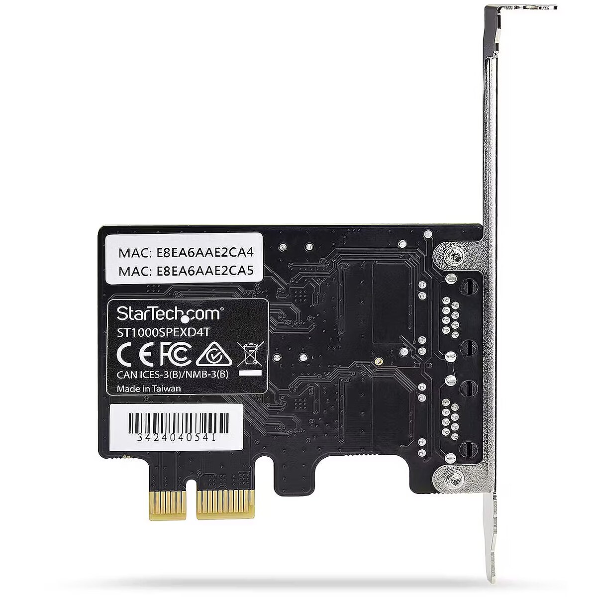 ShortSummaryDescription - StarTech.com 2-Port Gigabit PCIe Network Adapter Card, 10/100/1000Mbps PCI Express NIC, Dual Realtek RTL8111H, Works with Windows and Linux, TAA Compliant, Internal, Wired, PCI Express, Ethernet, 1000 Mbit/s, Black