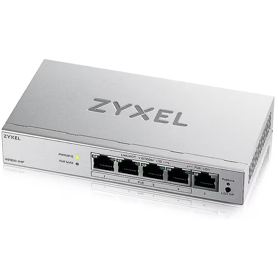 Zyxel GS1200-5HP V3, 5 PORT GIGABIT POE+ WEBMANAGED DESKTOP SWITCH, 4X POE, 68 WATT