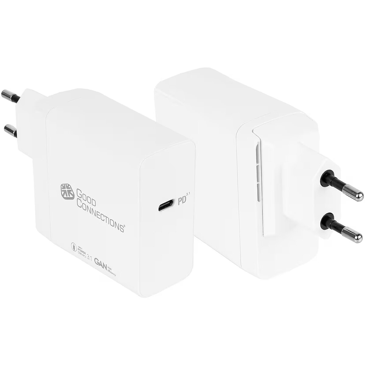 This product Good Connections USB quick charger 140 watts, 1 port (white, GaN technology, PD 3.1, QC 5, PPS)