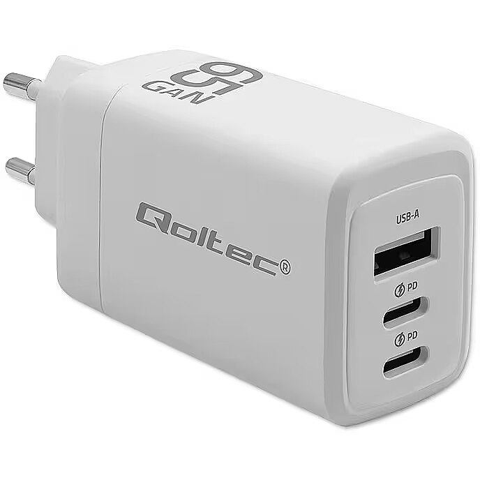 Qoltec GaN 65W charger,5V 20V 3A 3.35A,2xUSB,2xUSB C