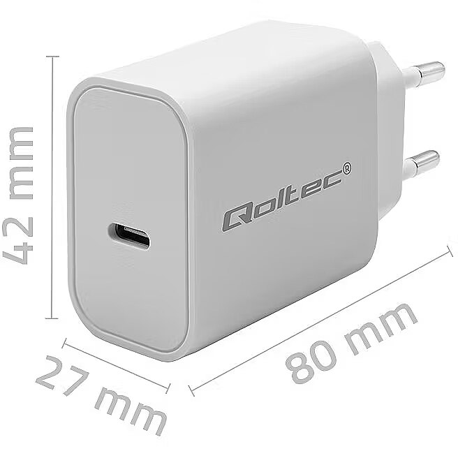 The Super Quick PD charger is an ultra-fast, advanced and versatile charger from Qoltec. It can charge your device up to 4 times faster than a standard charger, the battery reaches up to around 60% in 30 minutes. Precisely adjusts the maximum voltage and amperage of the transmitted current to the battery requirements of the connected device. This allows you to use just one charger for different types of equipment.