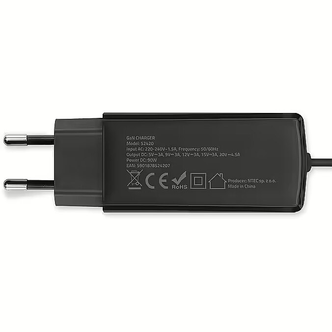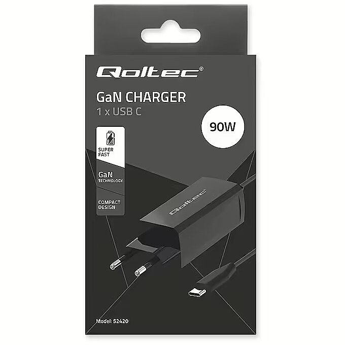 productName - Qoltec 52420 90W GaN Super Fast Charger| 5-20V | 3-4.5A | USB-C 3.1