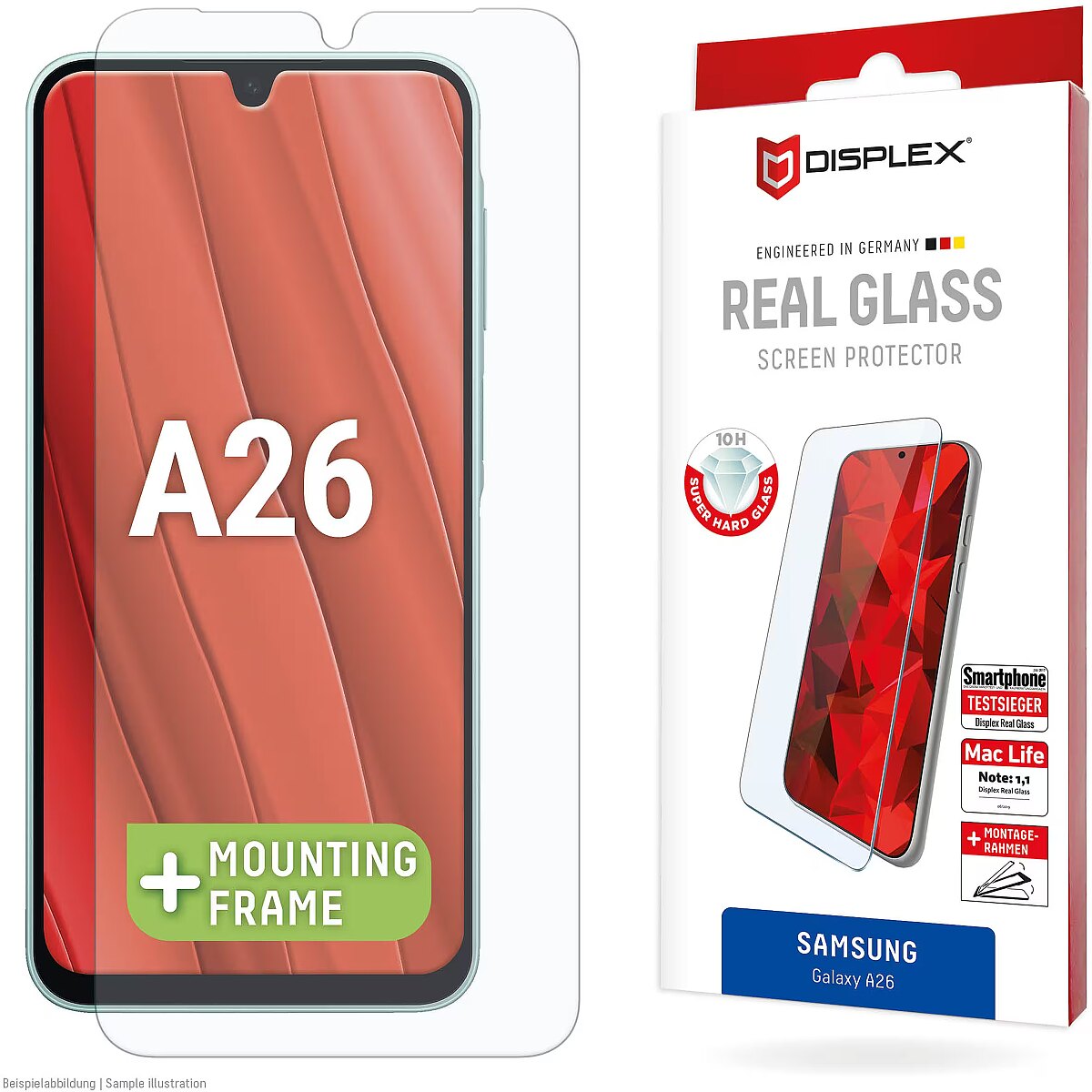Displex Real Glasschutzfolie für Samsung Galaxy A26 extrem hart & kratzer-resistent, Kantenschutz, Real Glass