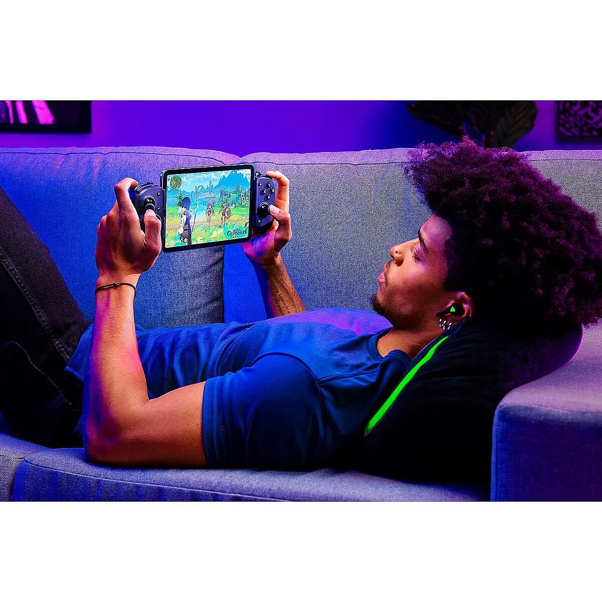 Experience mobile gaming on the greatest scale with a full-sized mobile controller to rule them all. Made for phones, mini tablets, and PC, get the ergonomics and performance of a pro-grade console controller with full-sized TMR thumbsticks, dual mouse click back buttons with claw grip bumpers, and immersive Sensa HD Haptics. Pro-grade Console Controls & Ergonomics For iPhone & Android