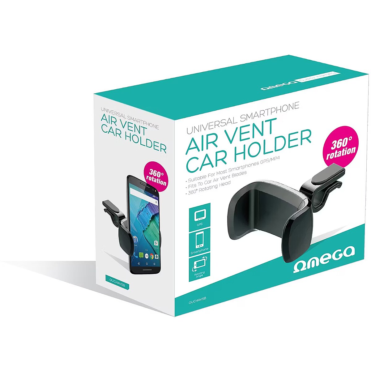 description_en - Universal car air vent mount Attaches to most air vent blades Stays put even on rough roads Suitable for most phones – maximum width of 82 mm 360° rotatable design