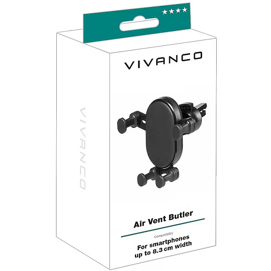description_en - The Vivanco Butler Air Vent is a universal car holder that attaches to the car's ventilation opening. The holder stays firmly in the ventilation grilles even on shaky roads and fits most phones (with a maximum width of 8.3 cm).