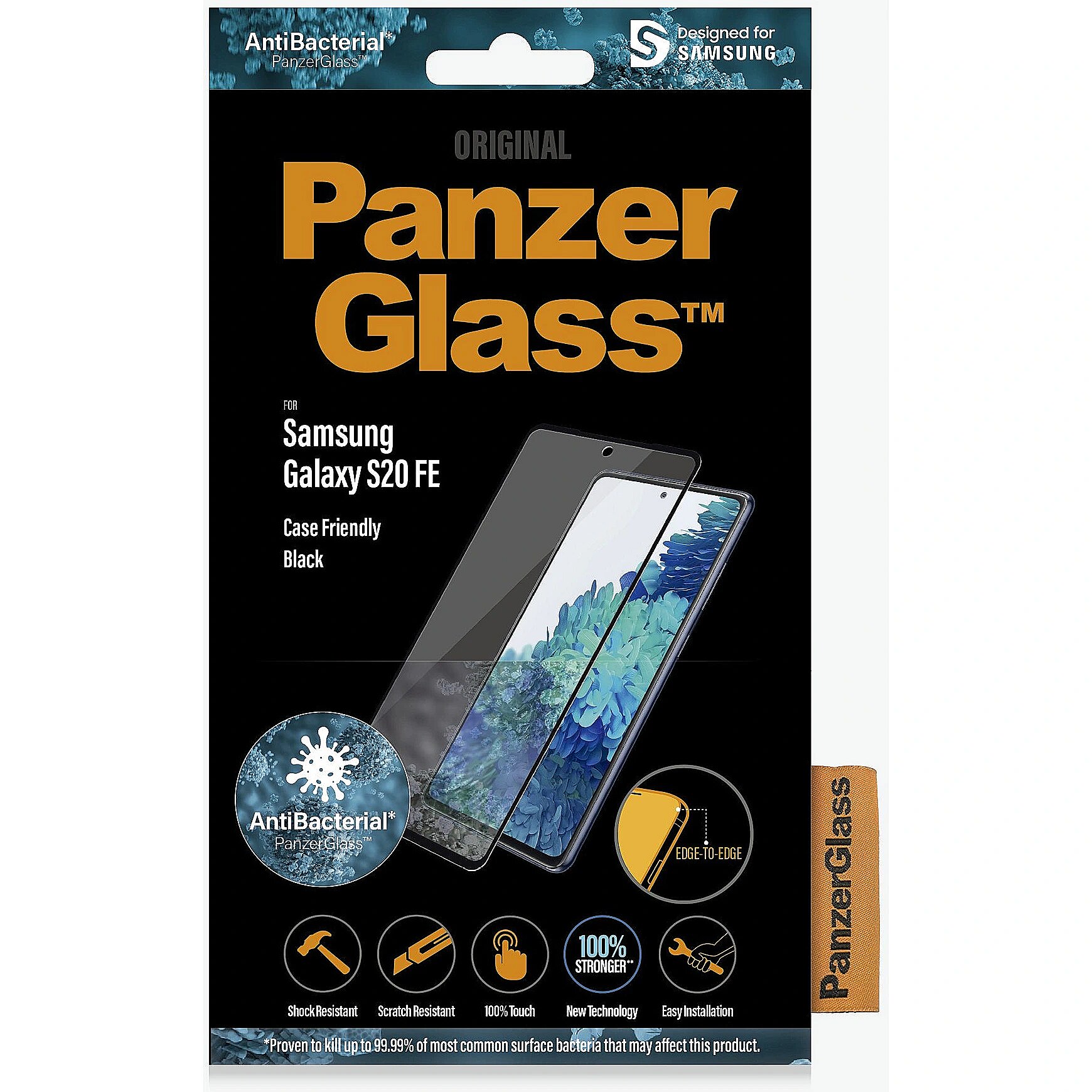 LongSummaryDescription - PanzerGlass ® Screen Protector Samsung Galaxy S20 FE. Brand compatibility: Samsung, Compatibility: Samsung - Galaxy S20 FE. Dry application. Protection features: Scratch resistant, Shock resistant, Anti-bacterial. Material: Tempered glass, Polyethylene terephthalate (PET), Silicone, Product colour: Transparent. Quantity per pack: 1 pc(s)