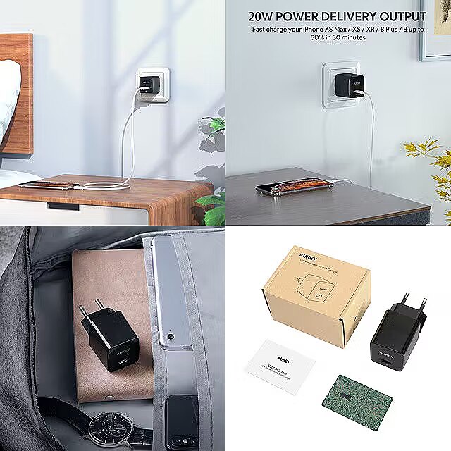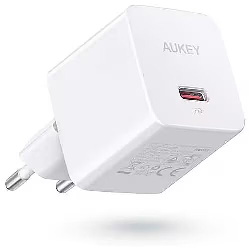 Description - Aukey PA-Y20S USB-C charger and 20W express charging The mains charger will enable you to charge your devices very quickly. It features a USB-C PD 20W port with Power Delivery technology. In addition, it is equipped with a range of safety features to ensure the protection of the devices being charged. Thanks to its miniature dimensions (32x36x36mm) and minimal weight (43g), you can easily take it with you to the office, on a business trip or on holiday. You don't have to worry about quality either, the manufacturer has used the highest quality, very robust and resistant materials for this model.    Compact design and great possibilities  The dimensions of the Aukey PA-Y20S fast charger are only 3.2 x 3.6 x 3.6 cm, and it weighs just 43 grams. However, it is also worth noting the design itself is minimalist and classy. The subdued colour scheme means that the charger will fit into virtually any room and any furnishings. It is small enough that you will quickly get used to always having it with you. You never know when you might need it in the office, when visiting friends or perhaps on holiday? The robust materials also make it highly resilient.  Really fast charging for your devices  What would you say to the fact that you can charge your iPhone X, 12, 13 from 0 to as much as 59% in just half an hour? Impossible? And yet! The Aukey PA-Y20S fast charger does just that. Thanks to Power Delivery technology, you can also charge your other devices with it three times faster than if you used a regular charger. As you can see, this model is no ordinary charger. It can simply do more.  Perfect protection for your charged devices  The Aukey PA-Y20S mains charger is equipped with three different protections: against overheating, against excessive current and against overcharging. These solutions ensure the safety of all the devices it charges, while also extending the life of their batteries. This is important because the equipment you connect to the charger should be protected. Especially if it has cost a fortune.  Works seamlessly with most devices  Equipped with a USB-C port, the PA-Y20S mains charger works perfectly with most mobile devices under 20 watts that can be charged using one of these ports. It is compatible with the iPhone 13 to iPhone 8 Series, MagSafe Duo, Samsung Galaxy, Switch, and iPad Pro, among others. It will also quickly equip selected models of Smartwatches or in-ear headphones with the necessary power. Of course, we have provided here only examples of the devices with which the presented model works, and the list is much longer.
