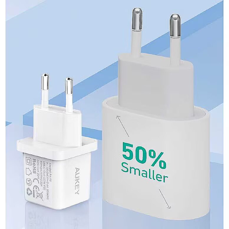 Description - Aukey PA-F5 Mini USB-C PD charger and 20W express charging. The mains charger will enable you to charge your devices very quickly. It features a 20W USB-C PD port with Power Delivery technology. In addition, it is equipped with a range of safety features to ensure the protection of the devices being charged. Thanks to its miniature dimensions (30.7x30.7x30.3mm) and minimal weight (36g), you can easily take it with you to the office, on a business trip or on holiday. You do not have to worry about quality either, the manufacturer has used the highest quality, very robust and resistant materials for this model.    Compact design and great possibilities  The dimensions of the Aukey PA-F5 fast charger are only 30.7 x 30.7 x 30.3 mm, and it weighs just 36 grams. However, it is also worth noting the design itself is minimalist and classy. The subdued colour scheme means that the charger will fit into virtually any room and any furnishings. It is small enough that you will quickly get used to always having it with you. You never know when you might need it at the office, when visiting friends or perhaps on holiday? The robust materials also make it highly resilient.  Really fast charging for your devices  What would you say to the fact that you can charge your iPhone X, 12, 13 from 0 to as much as 59% in just half an hour? Impossible? And yet! The Aukey PA-Y20S fast charger does just that. Thanks to Power Delivery technology, you can also charge your other devices with it three times faster than if you used a regular charger. As you can see, this model is no ordinary charger. It can simply do more.  Perfect protection for your charged devices  The Aukey PA-F5 mains charger is equipped with three different protections: against overheating, against excessive current and against overcharging. These solutions ensure the safety of all the devices it charges, while also extending the life of their batteries. This is important because the equipment you connect to the charger should be protected. Especially if it has cost a fortune.  Works seamlessly with most devices  Equipped with a USB-C port, the PA-Y20S mains charger works perfectly with most mobile devices under 20 watts that can be charged using one of these ports. It is compatible with the iPhone 13 to iPhone 8 Series, MagSafe Duo, Samsung Galaxy, Switch, and iPad Pro, among others. It will also quickly equip selected models of Smartwatches or in-ear headphones with the necessary power. Of course, we have provided here only examples of the devices with which the presented model works, and the list is much longer.