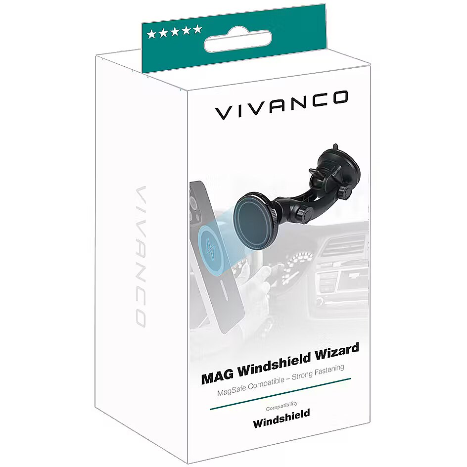 description_en - The Vivanco MAG Windshield Wizard high-quality magnetic car holder was developed specifically for the iPhone 12 series and is designed to be attached to the windshield. The integrated magnets are compatible with MagSafe technology developed by Apple and keep the phone safe. Easy and quick installation on the windshield Controlled with one hand 360° rotatable The clamp can be flexibly adjusted depending on the angle of inclination of the windshield Compatible with all Apple iPhone models with MagSafe Clamp for fixing the cable