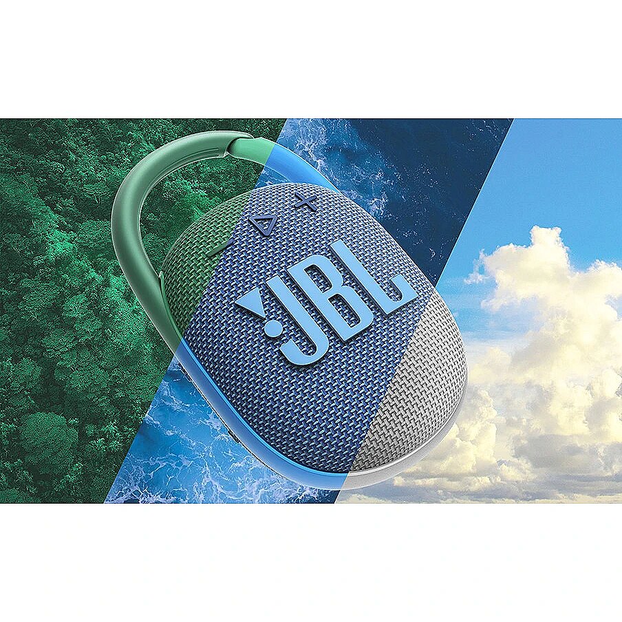 New innovative, eco-friendly design—same big audio performance. Help make the world a little greener with a must-have accessory for your next outing, made from up to 90% post-consumer recycled plastic and wrapped in 100% recycled fabric on the speaker grille. The vibrant fresh looking JBL Clip 4 Eco delivers surprisingly rich JBL Original Pro Sound in a compact package. The unique oval shape fits easy in your hand. The fully integrated carabiner hooks instantly to bags, belts, or buckles, to bring your favorite tunes anywhere. Waterproof, dustproof, and up to 10 hours of playtime, it’s rugged enough to tag along wherever you explore. Rich JBL Original Pro Sound Eco-friendly recycled materials and packaging Integrated carabiner IP67 waterproof and dustproof 10 hours of battery life Wireless Bluetooth streaming Bold style and ultra-portable design