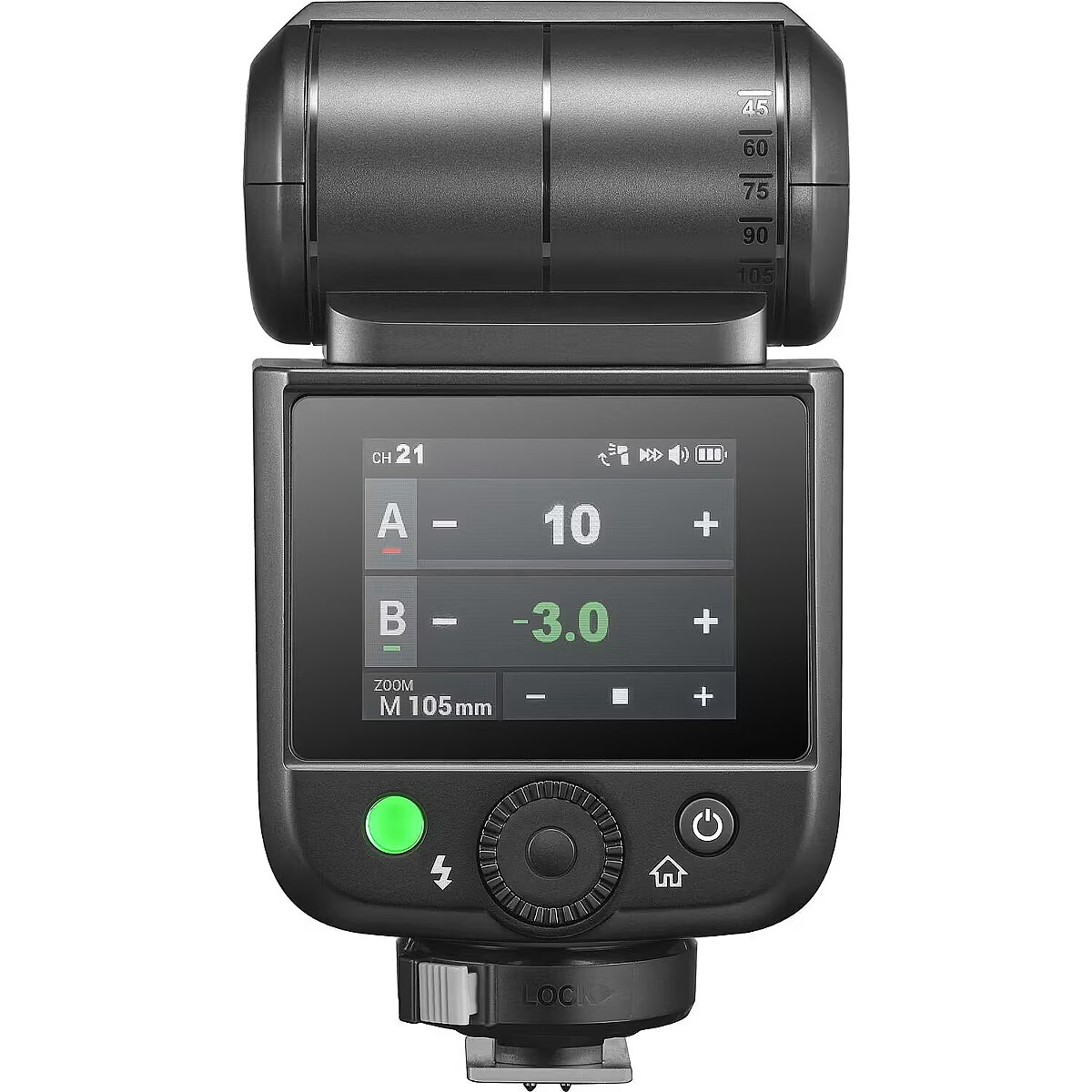 description_short_en - On-camera flash for Sony Up to 650 full-power flashes and 1.7s recharge time 2.0" touchscreen and modeling light 2.4GHz wireless flash control Rotating and tilting flash head