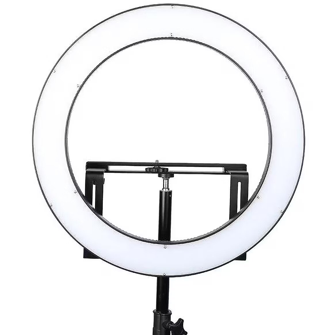 description_short_en - Practical LED ring light Perfect for product or portrait photos Color temperature: 2700-6500 K Diameter: 45.7 cm Mirror and phone mount included