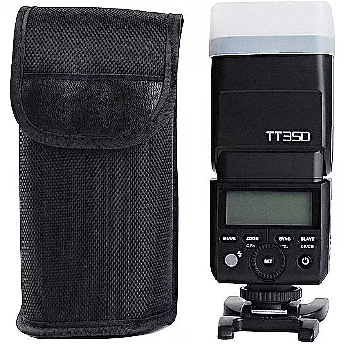description_en - Flash gun Godox TT350 is a small and light flash gun with a guide number of 36 that fits perfectly with mirrorless and compact cameras. It weighs only 200g and when mounted on the camera and pointing the head forward has only 95mm high. Despite its small size, its flash head rotates 270º horizontally and 97º vertically. This allows a lot of freedom in reflecting the flash light from the ceiling and walls regardless of the camera's orientation of pictures in the portrait and horizontal frame. The lamp has built-in Godox X system transmitter it can be used as a controller (Master) of other lamps using the Godox X system. It is also possible to switch it to the Slave mode, in which it can be controlled remotely from other Godox X transmitter. Flash gun Godox TT350 is equipped with three modes of operation. The first of them (TTL) allows you to shoot with the use of automatic selection of flash light power and work with all the automatic and semi-automatic modes available in cameras. The second option is manual mode with S1 and S2 mode selection. The third mode - strobe (Multi) is great for taking effective photos at longer exposure times. Flash gun Godox TT350 offers the ability to sync flash with ultra-fast shutter speeds up to 1 / 8000s ( HSS ). This option is especially appreciated by people who want to use the lamp during outdoor sessions, where very often you have to face intense ambient light. Built-in zoom in manual and automatic mode works in the range of 24-105mm. If you need to illuminate a wider plan, you can use the wide-angle diffuser built into the head, which corresponds to a focal length of ~ 15mm. In addition, the lamp is equipped with a reflector. In addition, the set comes with an additional light softening cover, which will be useful, e.g. when taking pictures with the torch pointing straight ahead. The factory set is completed with a stand and a handy cover. The battery compartment has a micro USB connector, which is used to update the firmware of the lamp.