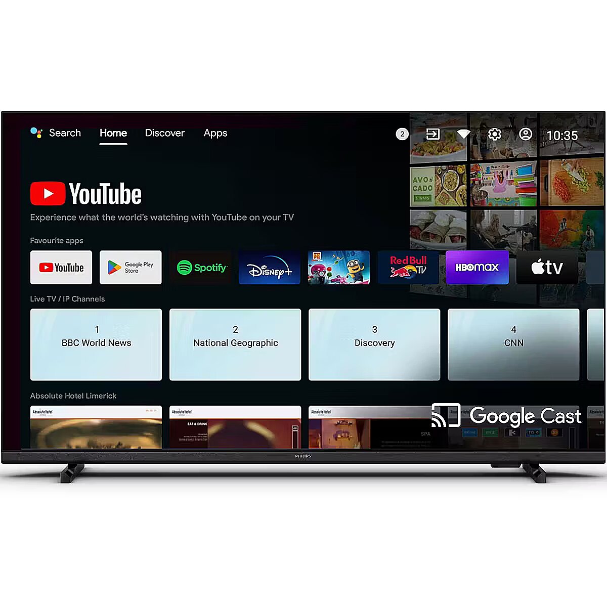 LongSummaryDescription - Philips 43HFL4518U/12. Display diagonal: 109.2 cm (43"), HD type: 4K Ultra HD, Display resolution: 3840 x 2160 pixels. Product colour: Black, Panel mounting interface: 100 x 200 mm. Operating system installed: Android TV, Video formats supported: AVC, AVI, H.264, HEVC, MKV, MPEG1, MPEG2, MPEG4, VP9, Audio formats supported: AAC, MP3, WAV, WMA, WMA-PRO. RMS rated power: 20 W, Audio decoders: DTS-HD. Wi-Fi standards: 802.11b, 802.11g, Wi-Fi 4 (802.11n), Wi-Fi 5 (802.11ac), Bluetooth profiles: A2DP, SBC