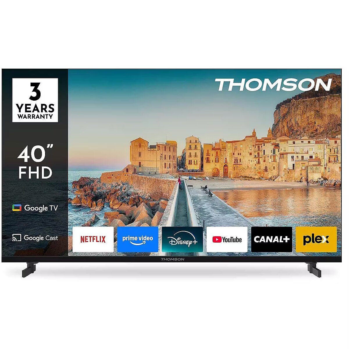 Description - Enjoy clear, precise visuals and a smarter way to watch with the Thomson Google TV 40" Full HD White. Designed for smooth everyday viewing, it combines clear picture quality with powerful smart features to enhance your home entertainment setup. With Google 5.0 operating system, you can easily browse and access content from all your favorite streaming services in one place. Personalized user profiles ensure that each family member gets tailored recommendations. Explore a wide selection of content with access to 400,000+ movies and shows, and use Google Cast to stream photos, videos, and apps from your compatible smartphone or tablet. With Google Assistant, you can control the TV, search for content, or manage smart home devices with simple voice commands. The sleek, frameless design adds a modern touch to your living space, while Dolby Audio delivers immersive sound to match the on-screen action. The built-in triple tuner provides flexible TV reception via satellite, antenna, or cable. The included ergonomic remote control with backlit buttons offers a comfortable viewing experience, even in dim lighting. Simply use the dedicated Favorite App button for one-touch access to your most-used app.