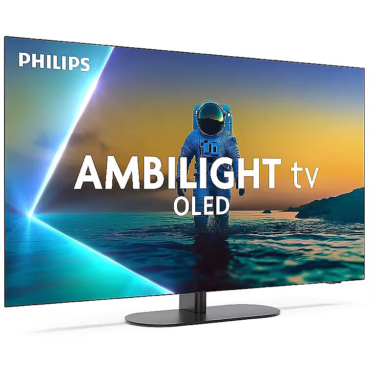 LongDesc - Incredible realism. Gorgeous design.This sophisticated OLED Ambilight TV lets the beauty flow. From the minimalist design and lifelike picture to the surprisingly cinematic sound, you'll be captivated. Ambilight's immersive glow makes everything seem bigger and more…wow!Immerse yourself in what you love. Ambilight TVAmbilight TVs are the only TVs with integrated LED lights on the back that react to what you watch, immersing you in a halo of colourful light. This changes everything: your TV seems bigger, and you'll be drawn deeper into your favourite sports, films, music and games.Bright OLED screen. Lifelike picture in any lightThe lifelike picture of this bright OLED TV always looks superb, even if viewed at an angle. Any changes to ambient lighting in your room are automatically compensated for whatever you're watching, blacks look black (not grey) and even the smallest details will leap from the shadows and bright areas. All major HDR formats are supported.Whatever you watch, a picture so real. P5 engine with AIPhilips P5 processor with AI delivers a picture so real it feels like you could step right into it. A deep-learning AI algorithm processes images in a manner similar to the human brain. No matter what you’re watching, you get lifelike detail and contrast, rich colour, and smooth motion.Cinematic viewing for all you watch and playHold onto the edge of your seat! With Dolby Vision on board, you'll see the picture the director wanted you to see, no more disappointing scenes that are too dark to make out! From movies to games, say hello to every glorious detail.Immersive surround sound technologyCompatibility with Dolby Atmos and DTS:X takes the sound of this TV to another level, in any room. The latest movies, the newest games, the biggest sports events: with sound effects placed in the space above and around you, you'll feel like you're right in the middle of the action.Whatever you watch, perfect TV sound. IntelliSound engineWith our IntelliSound engine onboard, your Ambilight TV can use AI to give you the best possible sound! Whether it's shows and movies, music or speech-heavy content like news, the TV will optimise settings automatically. Don't want to use AI? You can also select preset sound styles manually or customise settings yourself.Entertainment you love, with a little help from GoogleWhat do you want to watch? Google TV brings together movies, shows and more, from across your apps and subscriptions—and organises them just for you. You'll get suggestions based on what you like, and you can even use the Google TV app on your phone to curate your watchlist on the go.Total Gaming Solution. Thrilling play for every gamerHDMI 2.1, 120 Hz native refresh rate and an ultra-low input lag. Indie game or AAA title, this Ambilight TV gives you the specs you need to game how you want! For more control, Game Bar 2.0 lets you customise how you play, and you can connect a Bluetooth controller for cloud gaming. PC gamers can also enjoy 144 Hz VRR via HDMI.Connect to smart home networks, voice assistants and moreSeamless compatibility with Matter means you can easily integrate this 4K Ambilight TV into your existing smart home network. You can also use the TV remote to control your satellite or cable box or wake the Google Assistant—and the TV is compatible with Alexa-enabled devices and Apple AirPlay too.Thoughtful design. Responsible packagingThe sleek bezel-free screen looks sophisticated in any room—and Ambilight creates mesmerising mood lighting when the screen is off. The slender metal TV remote recharges wirelessly and has motion-activated backlighting. Our packaging uses FSC-certified recycled cardboard, and the inserts are printed on recycled paper.