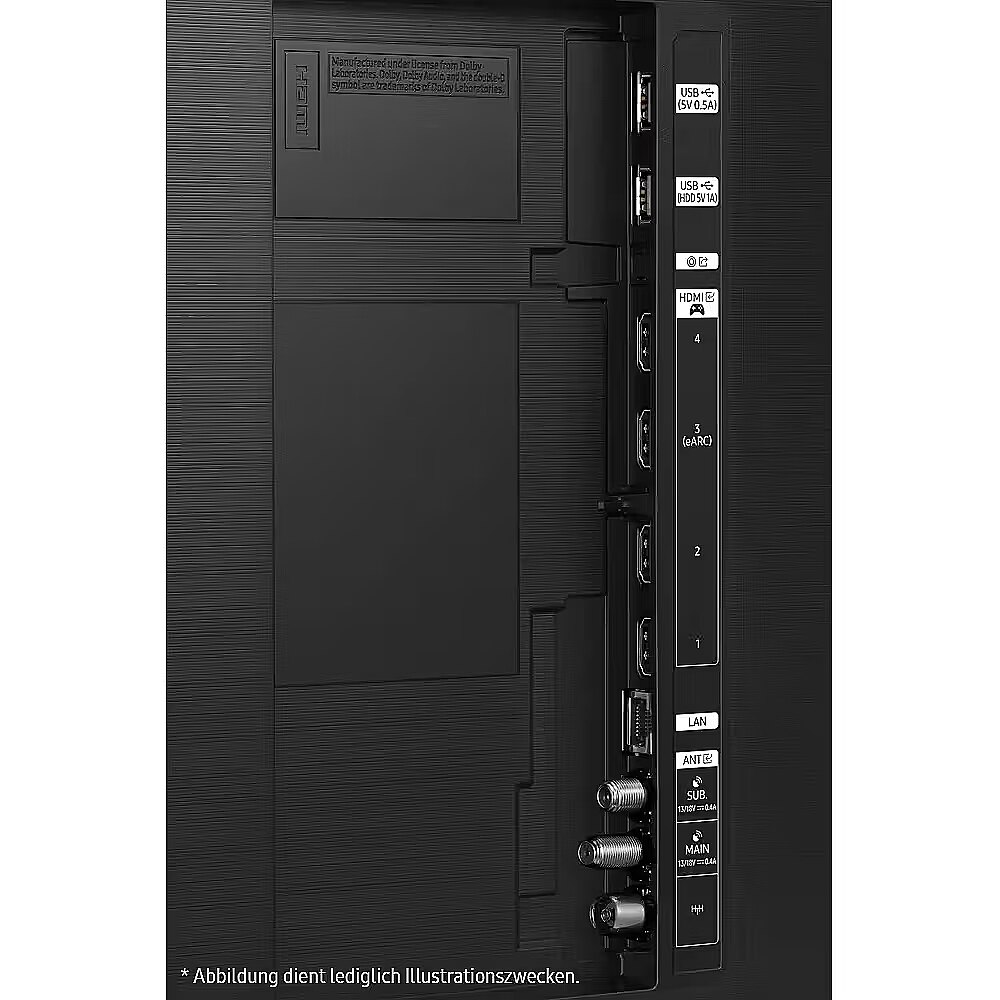 Brand-specific features - Samsung technologies (AV/TV) - 4K AI Upscaling Pro, AI Auto Game Mode, AI Motion Enhancer Pro, Active Voice Amplifier Pro, Adaptive Sound Pro, Auto HDR Remastering Pro, Karaoke Mode, NeoSlim Design, Object Tracking Sound Lite, Q-Symphony, Quantum Matrix Technology Plus, Samsung TV Plus, Smart Calibration, Wide Viewing Angle