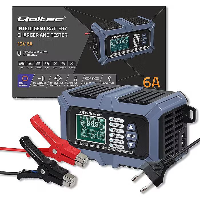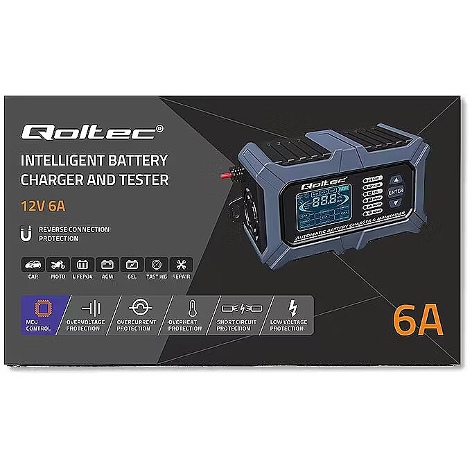 The Qoltec brand rectifier is microprocessor-based precision charging, offers 6 operating modes, which greatly simplifies the loading process, a single charger is sufficient for the various battery types and supports: