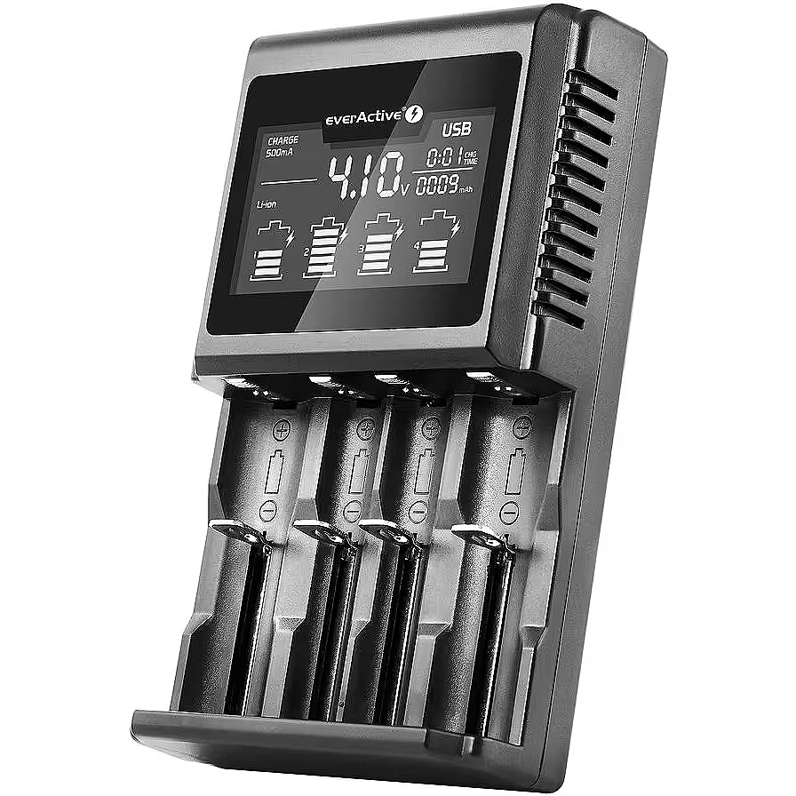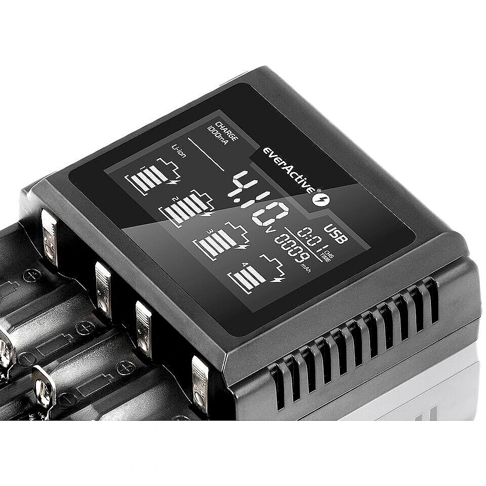 Description - Ładowarka do akumulatorków cylindrycznych Li-ion oraz Ni-MH everActive UC-4000 EverActive UC 4000 to nowa, profesjonalna jakość w uniwersalnych ładowarkach z jednoczesną obsługą akumulatorków Ni-MH oraz Li-ion. Nasza propozycja ma bardzo precyzyjne programy ładowania idealnie dostosowanego dla każdego rodzaju akumulatora. Akumulatory Li-ion oraz LiFePO4 ładowane są bardzo dokładnie metodą CC/CV z terminacją na poziomie ok. 75 mA. Gwarantuje to pełne bezpieczeństwo i pełne naładowanie każdego akumulatora, nawet mocno zdegradowanego lub o niskiej pojemności. Akumulatory Ni-MH ładowane są metodą CC (stałym prądem) z bardzo precyzyjną detekcją dV / PVD - ładowanie jest kończone dopiero po osiągnięciu maksymalnego napięcia na akumulatorze (wartość tego napięcia może być inna dla każdego akumulatora). W ładowarce UC4000 postawiono na maksymalną wygodę użytkowania - ładowarka jest niezwykle przyjazna i łatwa w obsłudze dla użytkownika. Osiągnięto niezwykły kompromis - w ładowarce znajdziemy "tylko" 2 podstawowe przyciski funkcyjne i 2 tryby pracy. Przemyślane tryby pracy sprawiają, że mimo tych pozornych ograniczeń ładowarka posiada praktycznie te same, a nawet większe możliwości co modele oferujące 4 oddzielne tryby pracy.