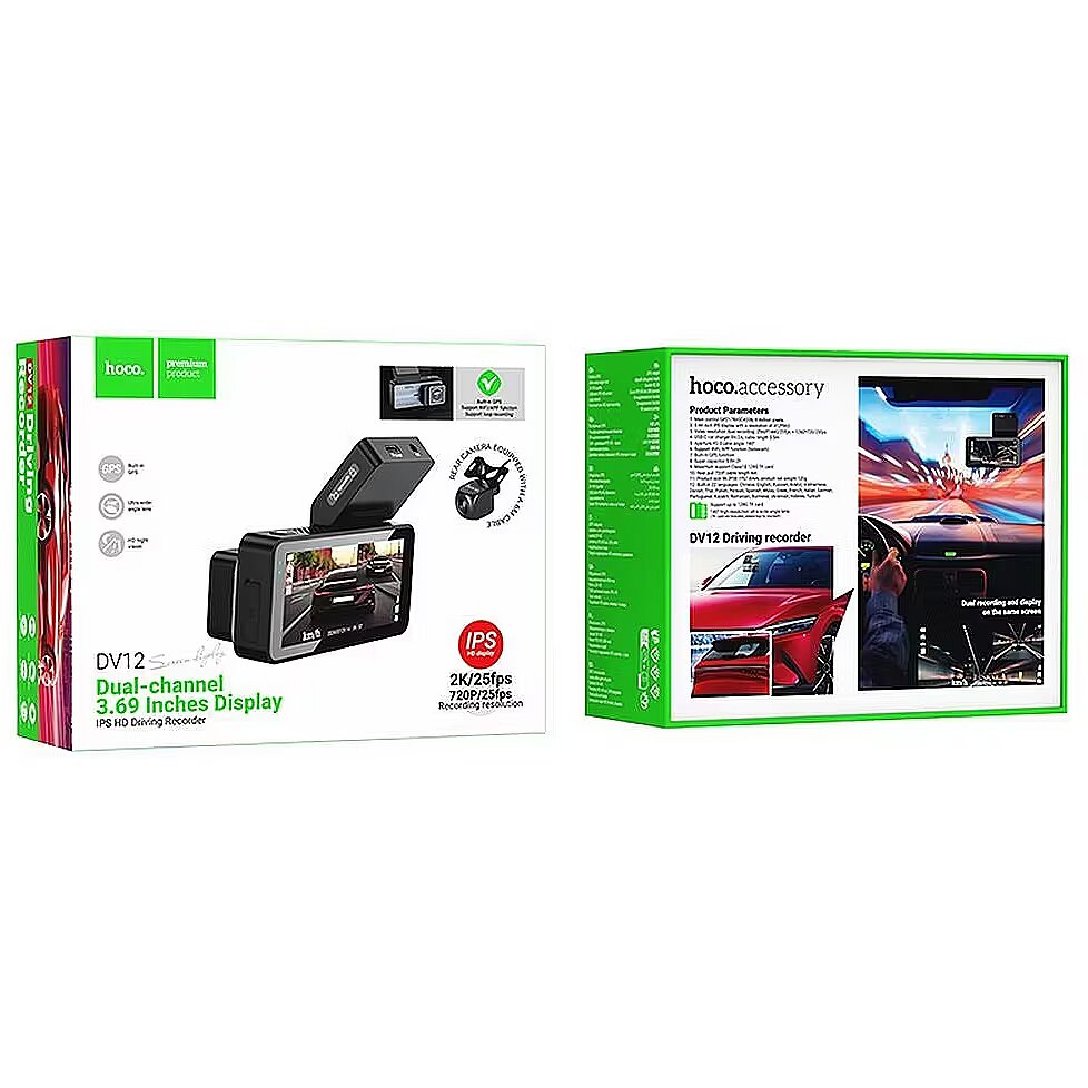 description_ru - Автомобильная камера Hoco DV12 2K GPS — это передовое записывающее устройство, обеспечивающее высококачественную запись с передней и задней камер. Благодаря разрешению 2K спереди и 720P сзади, широкому углу обзора 140° и диафрагме f/2.0 она обеспечивает четкие и подробные записи в различных условиях освещения. Встроенный модуль GPS позволяет точно отслеживать маршрут, а функциональность Wi-Fi позволяет легко управлять записями через специальное приложение bobocam. Ее прочная конструкция и компактные размеры обеспечивают бесшовную интеграцию в салон автомобиля, не загораживая обзор водителю.