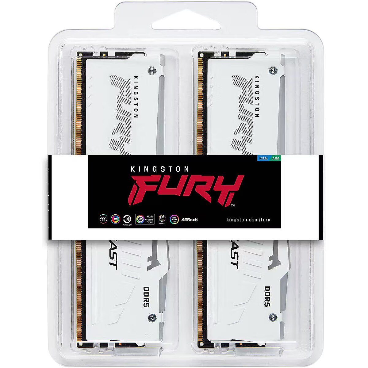 Kingston FURY Beast RGB White (Intel XMP), DDR5, 16GB, 5200MT/s, CL40, Kit of 2