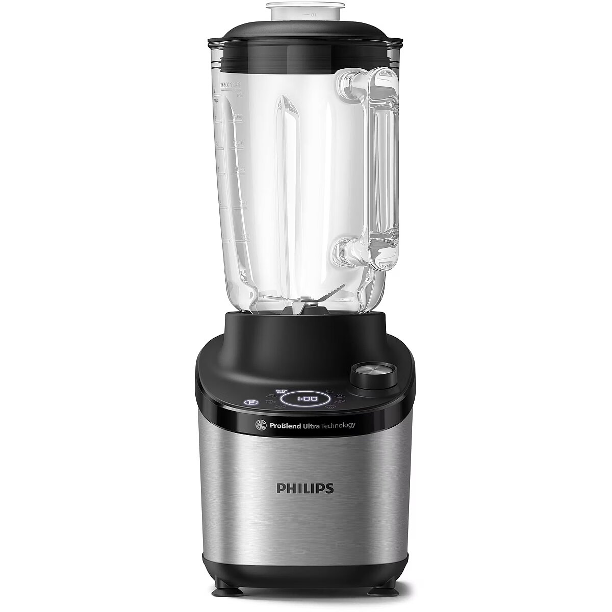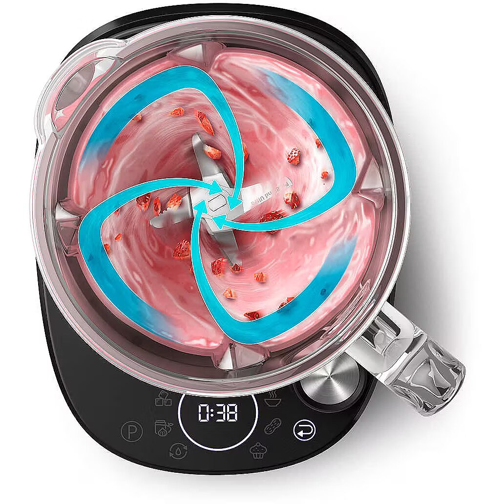 description_en - 1.8 L effective capacity (2 L glass jar) powered by a 1500 W ProBlend Ultra motor—ideal for smoothies, soups, nut butter, sauces, or crushed ice. Features 3-tier ProBlend Ultra blades and jar ribs that recirculate ingredients for consistent, smooth blending. Offers 12-speed settings, pulse and 6 quick-select programs, plus a quick-clean function built into the digital display. Dishwasher-safe jar and blades; sturdy metal body with non-slip feet and tempered glass jug. Supports long-term use with a 2-year warranty.