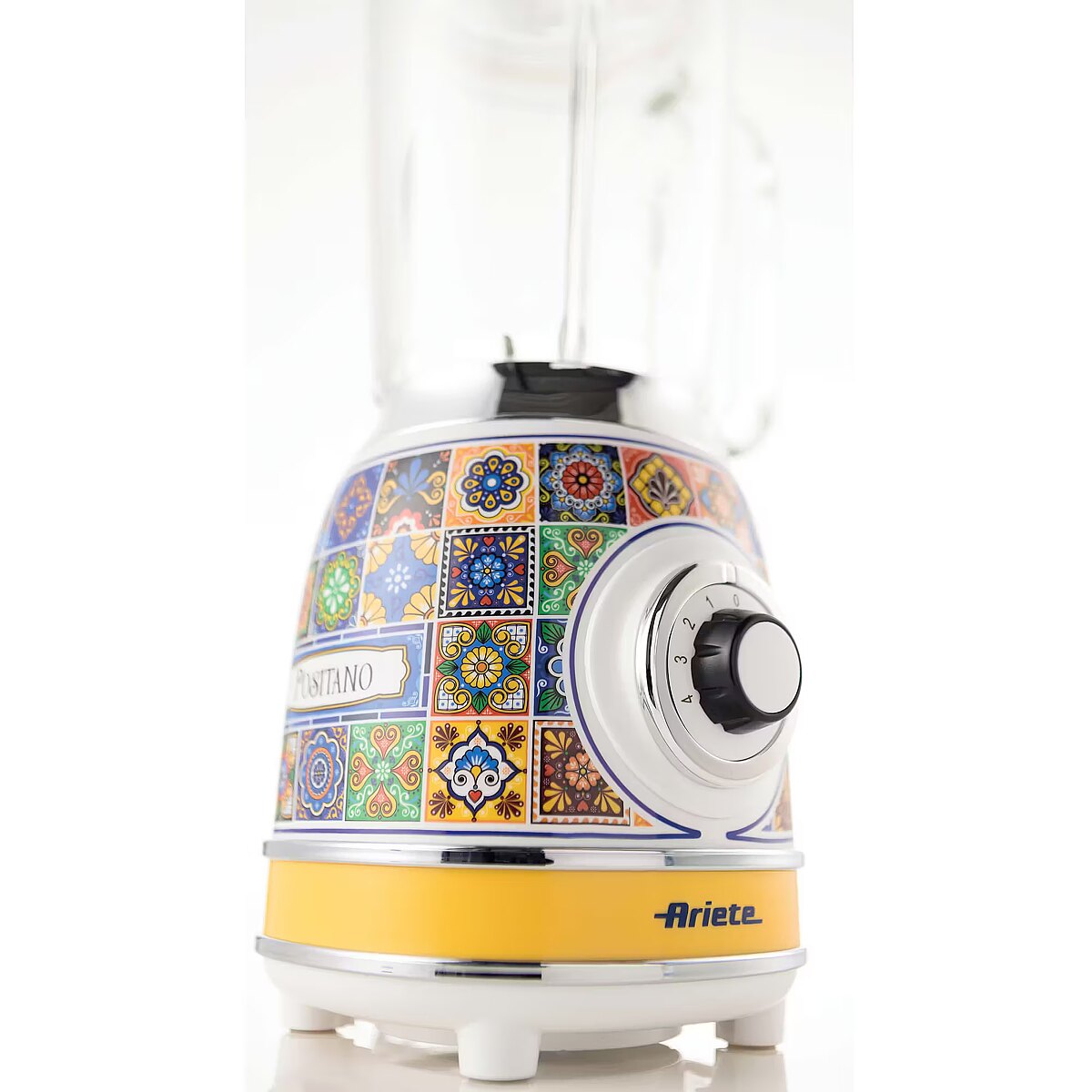 LongDesc - Refined design and cutting-edge functionality to transform your kitchen into an oasis of beauty, the Mediterranean charm of this line is inspired by the unique and vibrant style of the beautiful city of Positano.An energising smoothie, a creamy smoothie or a refreshing slushie? With Ariete's Positano blender with glass jug you can prepare the drink you want every day, mixing the ingredients and blending them evenly. The glass jug is durable and the 4 stainless steel blades, combined with the 4 speeds available, are ideal for blending anything you like, even ice with the Pulse Function. Thanks to the convenient dispensing cap, you can also place the ingredients directly into the blender jug from the hole at the top. The technology and style of the Positano electric blender come together in a blender that is perfect for bringing a touch of refined elegance to your kitchen.
