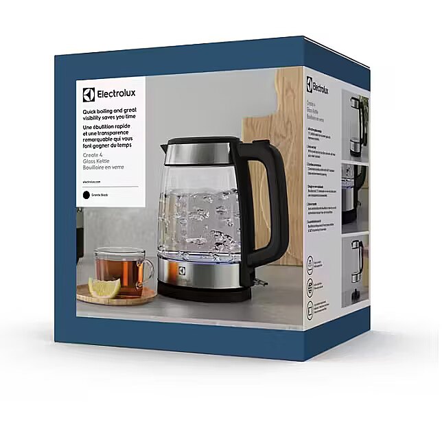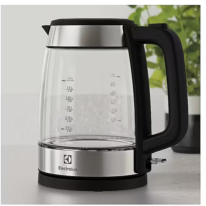 Title - Electrolux E4GK1-4GB electric kettle 1.7 L 2200 W Black, Stainless steel, Transparent