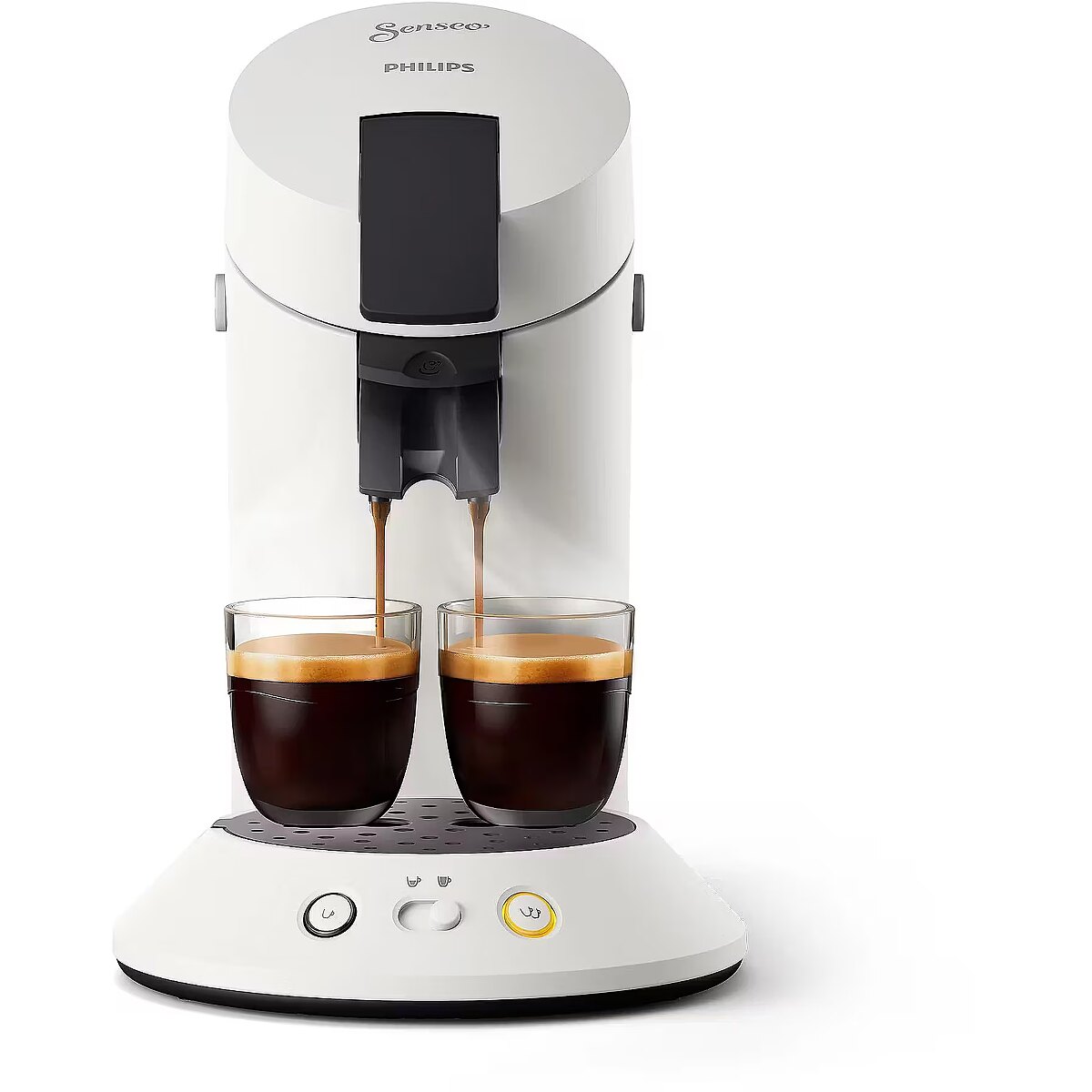 LongDesc - Enjoy delicious black coffee - Long or IntenseChoose your favorite recipe with Intensity SelectThe most iconic SENSEO® coffee machine, now renewed. Choose a long or intense coffee in an easy and intuitive way thanks to Intensity Select. Coffee boost technology spreads the water via 45 holes over the coffee pad for the richest flavor.Coffee variety for every moment- Coffee boost to get the most out of your pads- Crema Plus for a finer and more velvety crema layer- Vast variety of SENSEO® coffee blends and flavorsMore convenience- Intensity Select for long or intense coffee recipes- The only coffee pad machine that brews 2 cups at a time- Direct start makes your coffee when the machine is heated upCreated with the environment in mind- 28% recycled plastics, 45% less energy consumption- Machine is tested >10.000 times to ensure consistent qualityCoffee boost technologyCoffee Boost technology disperses the hot water, via 45 aroma nozzles, evenly through each SENSEO® coffee pad. Get the most out of your coffee pad for the best tasting SENSEO® coffee.Crema plus technologyCrema Plus technology ensures the finest and most velvety crema layer. For each SENSEO® cup of coffee.Variety of blends and flavorsSENSEO® has a vast variety of different coffee blends and flavors. Each blend has its own distinctive taste to fit your personal preference.Intensity selectDelicious long or intense recipes with the simple flick of a switch.Direct start and shut offThe direct start makes your coffee straight after the machine has heated up. After making coffee your SENSEO® machine switches off automatically for energy saving.1 or 2 cups at the same timePrepare 1 or 2 cups of your delicious SENSEO® coffee in less than a minute.Green productLess energy consumption and more recycled plastics ensure it is more environmentally friendly before, during and after its life with you.Machine is tested >10.000 timePhilips tests their coffee makers during the development process for more than 10.000 cups of coffee. This ensures high quality and durability