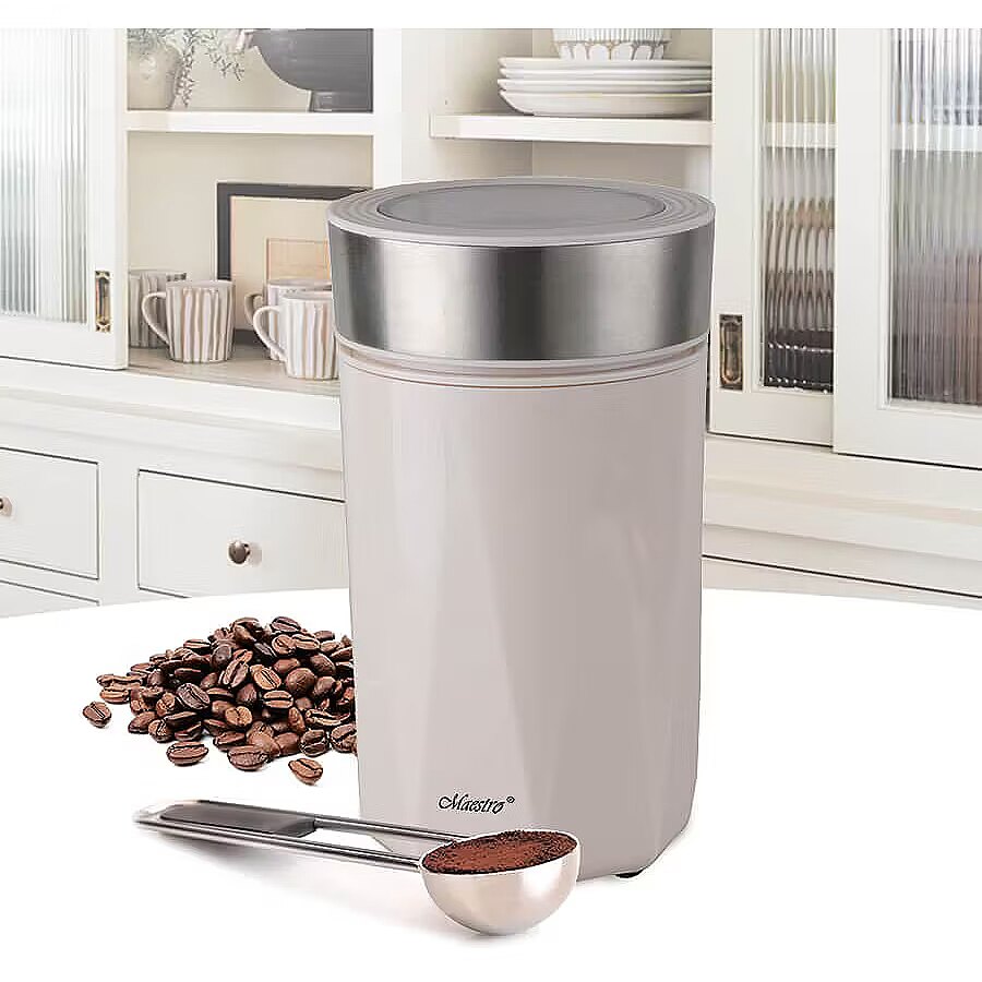Description - Młynek do kawy Maestro MR-456-IVORY to praktyczne urządzenie, które doskonale sprawdzi się w kuchni każdego miłośnika świeżo mielonej kawy. Dzięki pojemności 50 g można w łatwy sposób zmielić odpowiednią ilość kawy na kilka filiżanek aromatycznego napoju. Młynek o mocy 150 W jest wyposażony w trwałe ostrza ze stali nierdzewnej, które efektywnie mielą ziarna kawy, przyprawy oraz orzechy, gwarantując perfekcyjną konsystencję.