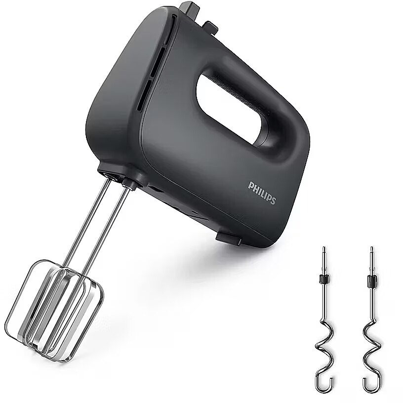 SpecificationsModel: HR3739/00Type: Hand mixerPower: 450 WSpeed settings: 5Turbo mode: YesControl type: Mechanical sliderAttachment material: Stainless steelAttachments: Beaters, dough hooksBowl capacity: 3 LBowl type: Rotating, detachableBody material: Plastic (BPA-free)Bowl material: PlasticPower supply: 230 V / 50 HzCable length: 1.2 mAnti-slip feet: YesColor: White / GreyPackage contents: Mixer, beaters, dough hooks, bowl, user manual