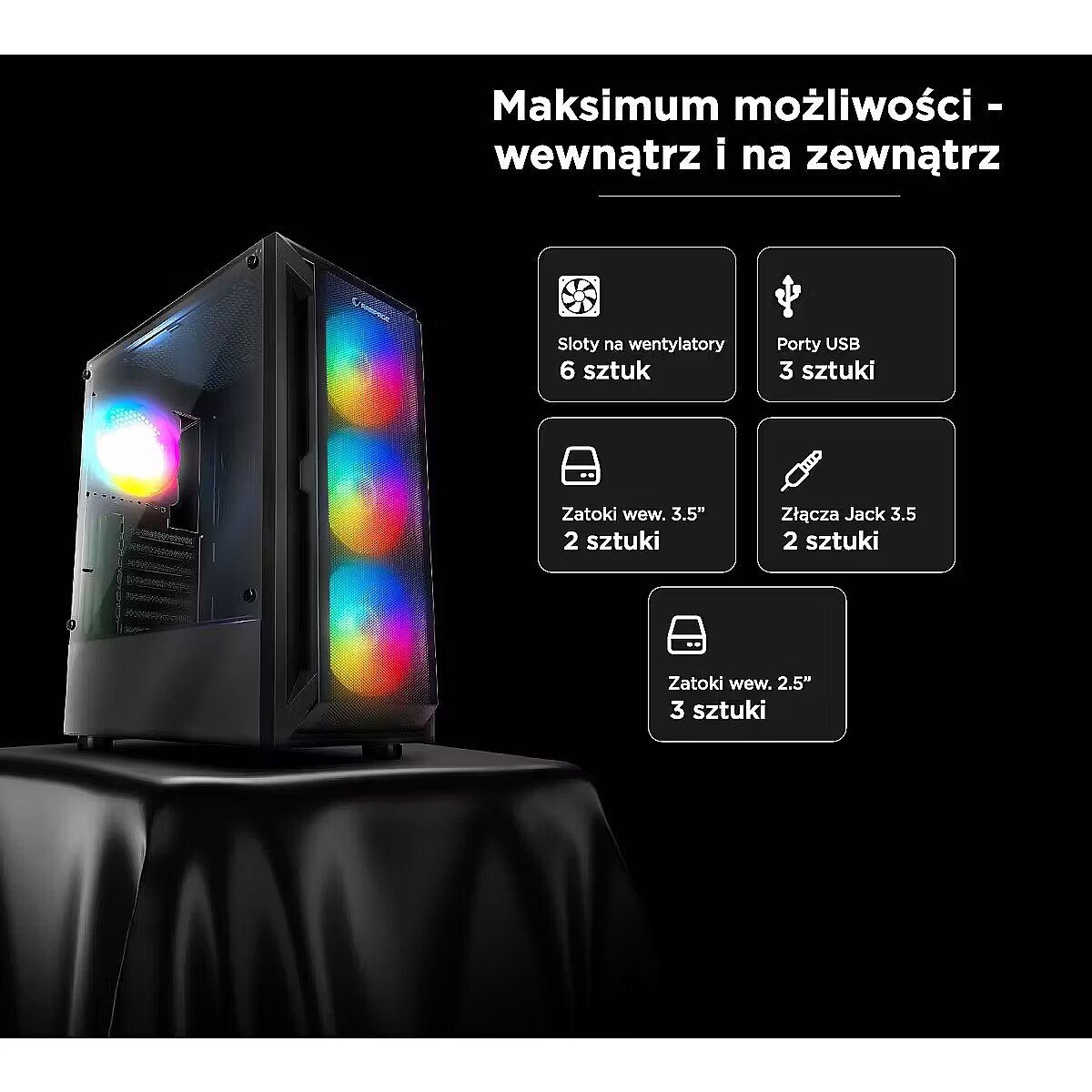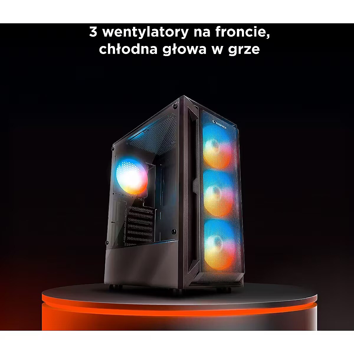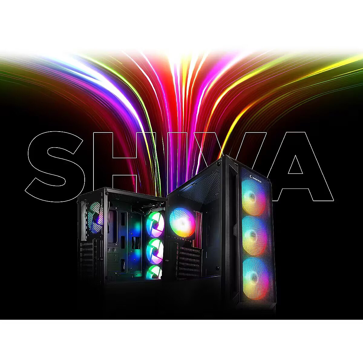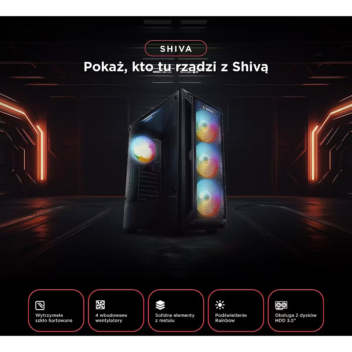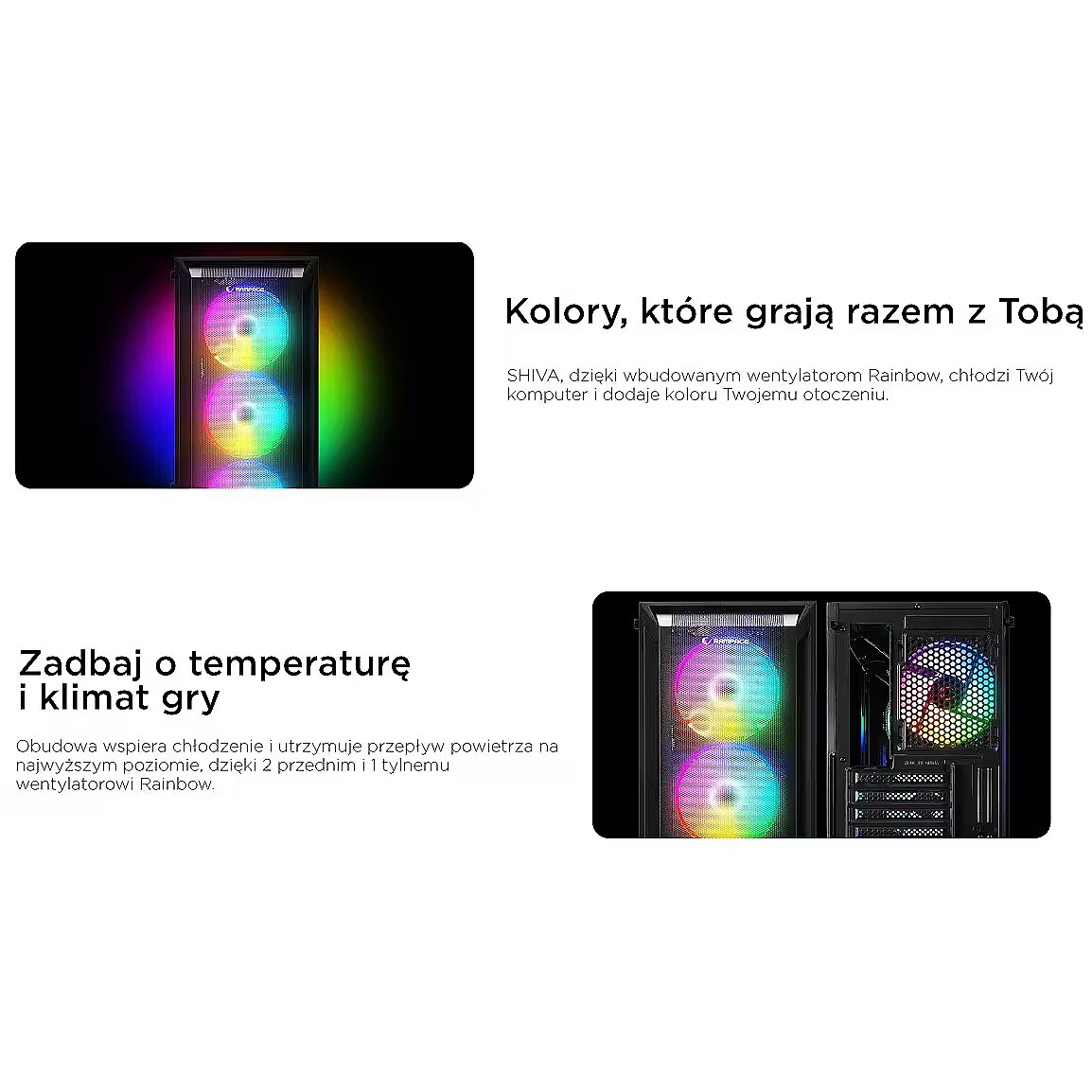 ShortDescription - Rampage SHIVA Obudowa PC z oknem 4x wentylator 120mm Rainbow czarna