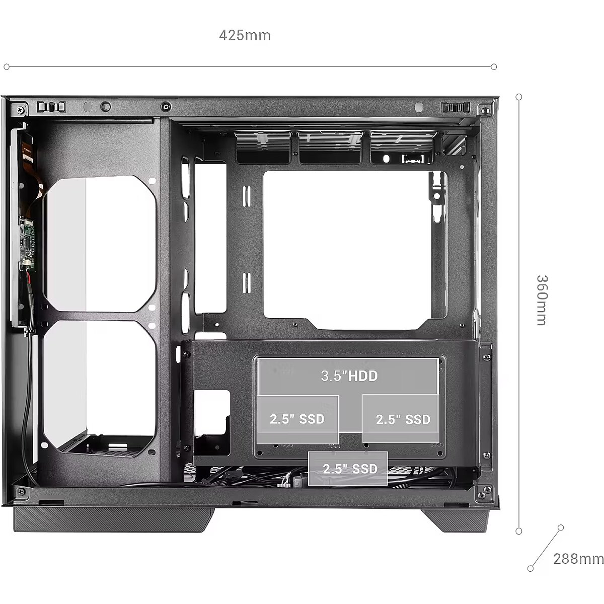 LongDesc - GAMING CASE MC-MIRAGEDiscover the MC-MIRAGE, an ATX gaming case that takes customization and performance to a new level thanks to its exclusive integrated 7.2” IPS LCD screen and its elegant panoramic tempered glass design. With a dual-chamber structure, advanced compatibility, and space for next-generation hardware, it is built for enthusiasts, gamers, and creators who want a unique, sophisticated setup packed with innovation.Visual innovation and limitless power- Customizable 7.2” IPS LCD screen- Continuous tempered glass front and side panel- Dual-chamber structure- Support for liquid cooling up to 360 mmINTEGRATED LCD SCREENThe MC-MIRAGE features a 7.2” IPS LCD screen with 360×960 px resolution, allowing you to monitor performance in real time and add an unmatched level of customization. Thanks to its control software, you can display system data, images, animations, or even videos, turning your case into an interactive showcase that combines style and functionality.PANORAMIC AESTHETICSThe continuous tempered glass front and side panels provide a clear, immersive view of the interior. This panoramic design highlights every component and enhances ARGB lighting effects, creating a visual spectacle that blends elegance, creativity, and personality.DUAL-CHAMBER STRUCTUREIts optimized dual-chamber structure separates the power supply and storage from the rest of the components. This layout improves airflow, simplifies assembly, and keeps cables hidden, ensuring a flawless aesthetic and superior thermal performance.VERSATILITY AND COMPATIBILITYThe MC-MIRAGE offers advanced support for ATX, MicroATX, and Mini-ITX motherboards. With space for graphics cards up to 400 mm and CPU coolers up to 165 mm, it is ready for next-gen hardware. Its advanced cable management ensures a clean installation, boosting both cooling efficiency and the final visual impact.Note: Compatible with reverse connector ATX and MicroATX motherboards.ADVANCED COOLINGDesigned for extreme setups, it supports up to 9 fans and liquid cooling systems up to 360 mm (maximum dimensions: 395×120×52 mm). Its internal layout promotes continuous airflow, keeping stable temperatures even under heavy loads, ensuring long-lasting, consistent performance.NEXT-GEN CONNECTIVITYEquipped with a next-generation front panel, the MC-MIRAGE includes USB 3.0, USB-C, and HD Audio + Mic, providing instant access to peripherals and external devices.