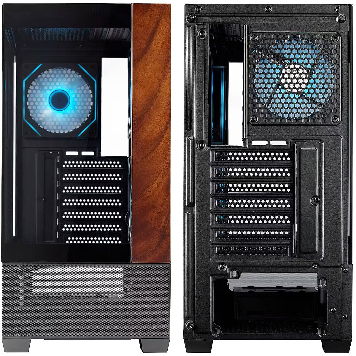 name - Cooler Master Elite 690 PC-Gehäuse, Midi-Tower, ATX, Tempered Glass - 4x ARGB-Lüfter, Holz, schwarz