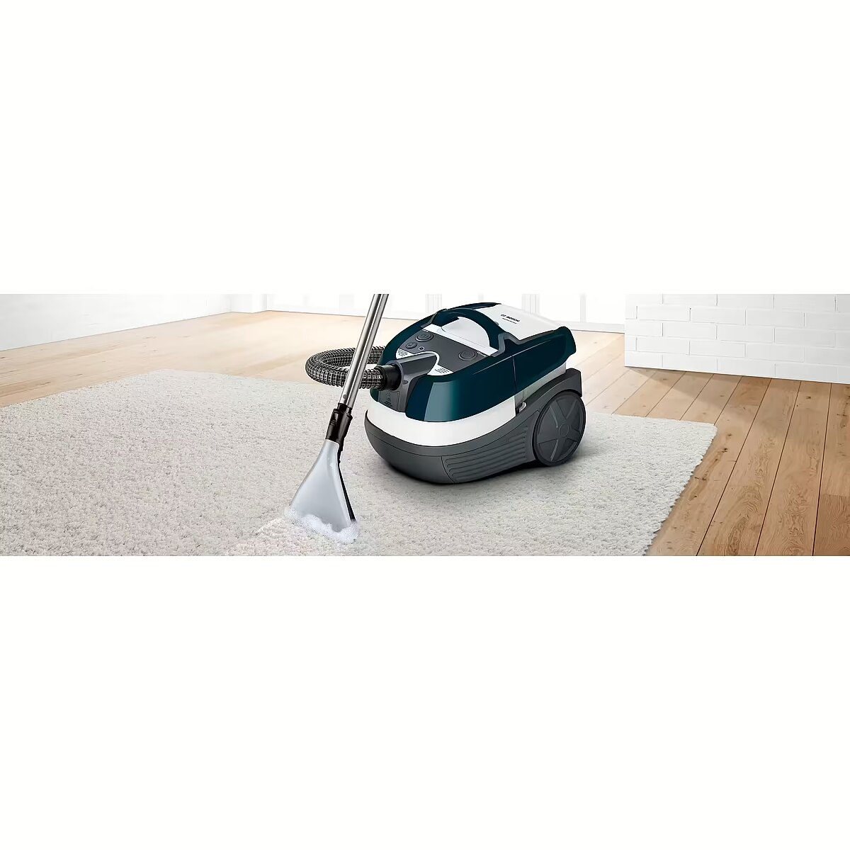 LongSummaryDescription - Bosch Serie 4 BWD41720. Maximum input power: 1700 W. Type: Drum vacuum, Cleaning type: Dry&wet, Dust container type: Dust bag, Dust capacity: 5 L. Vacuum air filtering: EPA, Dirt separating method: Filtering. Product colour: Grey, Turquoise, White