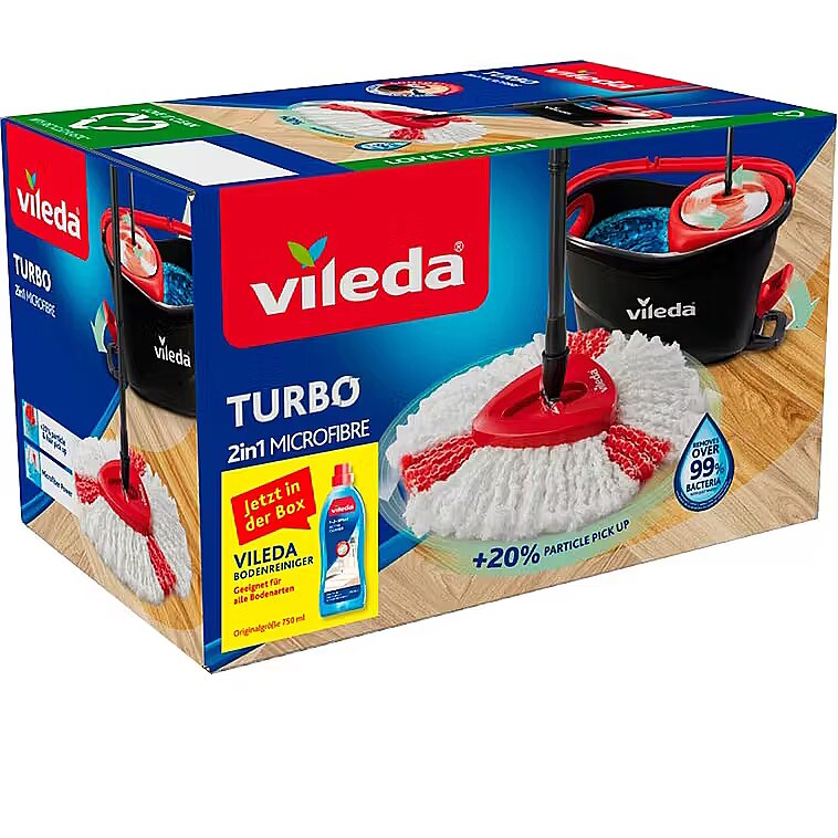Name - Vileda Mop Turbo 2in1 Microfibre Complete Set, Floor Mop (black/red, incl. 750ml Vileda Floor Cleaner)