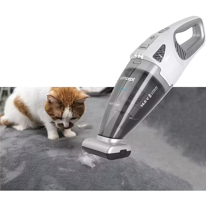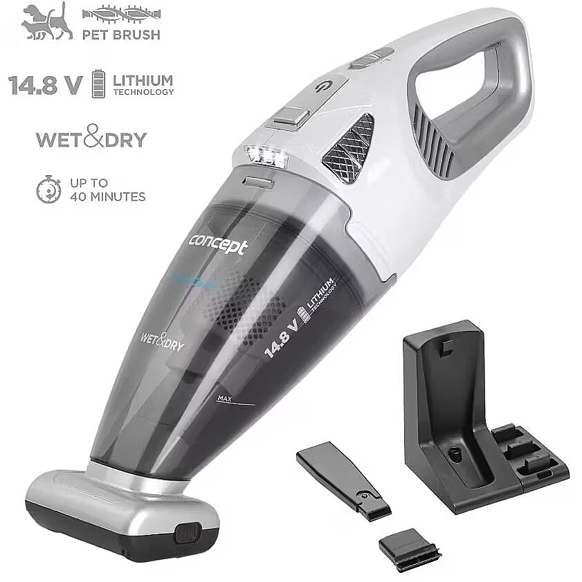 Odkurzacz ręczny Concept VP4370 do odkurzania na sucho i na mokro oferuje wysoką moc ssania i pełne 40 minut pracy na jednym ładowaniu. Nie ma lepszego partnera do szybkiego sprzątania. Wet & Dry odkurzanie na sucho i na mokro