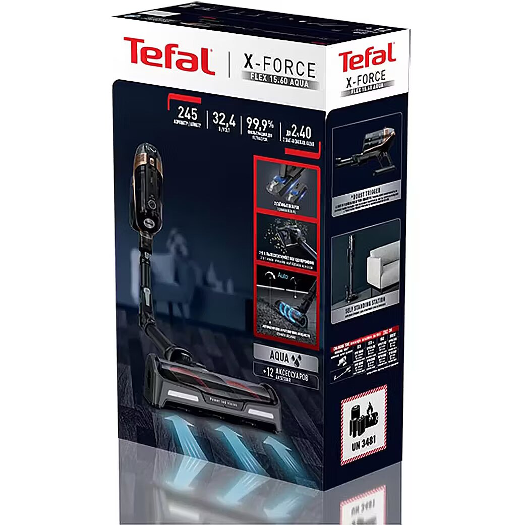 MediumDescription EN - Discover X-Force Flex 15.60,Tefal's most powerful cordless stick vacuum combined with a best-in-class X-perience. Revolutionize your cleaning routine with a full cordless cleaning package: Powerful suction, two removable batteries, automatic suction power adjustment by floor type, the Aqua head to vacuum and wash at the same time and so much more. • Flex Technology reaches up to 4x further under low furniture