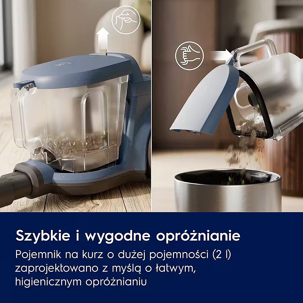 *Based on internal testing according to IEC 62885-2, edition 2.0: sections 5.1, 5.10, and 5.12. Hassle-free dustbin emptying