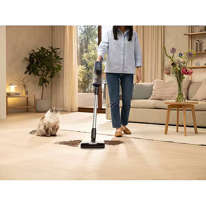 Description - Performance and flexibility - ready to clean any surface The 600 cordless vacuum cleaner is designed for effortless and thorough cleaning of all surfaces and upholstery. High dust pick-up performance and quick-release features make it easy to switch between tasks. Perfect cleaning results Thanks to its unique bristles, the PowerPro multi-surface brush ensures excellent dust pick-up on different surface types, achieving up to 99% efficiency on hard floors in a single double pass for fine dust particles. Complete cleaning with every movement, even in hard-to-reach areas of your home. Longer cleaning time without needing to replace the filter The improved cyclonic separator minimizes the risk of filter clogging, ensuring consistently optimal performance. Up to 2x longer operation on a single filter. Up to 50 minutes of cleaning on a single charge With up to 50 minutes of continuous cleaning using the handheld unit, you can cover more areas in one go. The high-quality six-cell battery provides uninterrupted cleaning across all surfaces. Quick dustbin emptying without contact with dust You can easily empty the 0.5L dust container with just one button, without dust clouds or mess. Bottom-release dust disposal ensures a quick and simple emptying process to keep your home clean and fresh. Easy floor mopping The rotating PowerPro mop pads quickly and effectively remove dirt and dried stains from hard floors. Discover a new level of convenient cleaning with a single versatile tool.