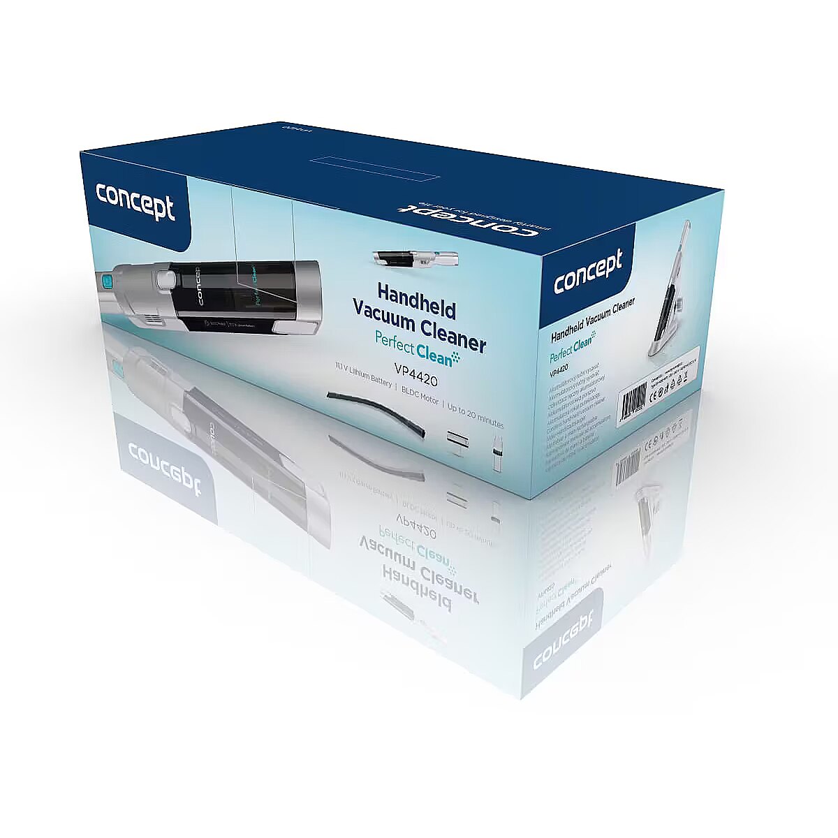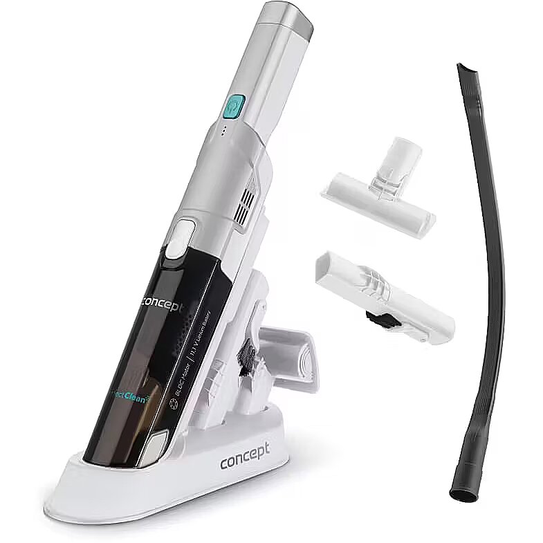 Description - An elegant helper with extreme performance The VP4420 Perfect Clean handheld hoover combines an elegant design with extreme suction power thanks to its high-performance brushless BLDC motor. The compact and ultra-lightweight body ensures convenient handling for daily cleaning at home and in the car. Thanks to the high-quality 11.1 V Li-Ion battery with a capacity of 2200 mAh, you can clean for up to 20 minutes on a single charge and the cord will not get in the way while you are working. Practical and easy to clean The hoover is equipped with a charging station that also serves as a stand for small accessories. Emptying the dust container is very quick and easy. Simply press the button on the body of the hoover to detach the dust container, clean it and put it back on. Your helper will be ready to work again after a while. High-quality filtration The hoover is equipped with a high-performance HEPA 13 filter, which can catch up to 99.9% of particles such as dust, pollen and cigarette smoke. Hoovers equipped with a HEPA 13 filter help prevent the development of dust allergies, which can develop at any age. It will be especially appreciated by families with young children and allergy sufferers. In addition, the HEPA filter is washable, which extends its life. Simply remove it from the hoover body, rinse it under running water and allow it to dry completely. 2-in-1 crevice tool The VP4420 handheld hoover comes with a special 2-in-1 nozzle, which is a combination of a crevice nozzle and dusting brush. You can use it as a separate crevice nozzle to vacuum hard-to-reach areas (radiators, drawers, spaces between mattresses and upholstery, etc.) or close the dusting brush and gently vacuum furniture, blinds, windowsills, books or your keyboard. Upholstery nozzle Use the upholstery squeegee to vacuum sofas, armchairs, mattresses, lockers and beds. In addition, it will help wipe the dust off your furniture without scratching it. You can also use it to clean windowsills. Flexible CAR squeegee Cleaning your car between seats or hard-to-reach areas will be much easier with the flexible CAR hose. Thanks to its length and flexibility, you can clean in any hard-to-reach areas. The Perfect Clean range It's worth keeping things tidy. That's why we have prepared a wide range of Concept cleaning products. Just choose, do you already have your favourite?